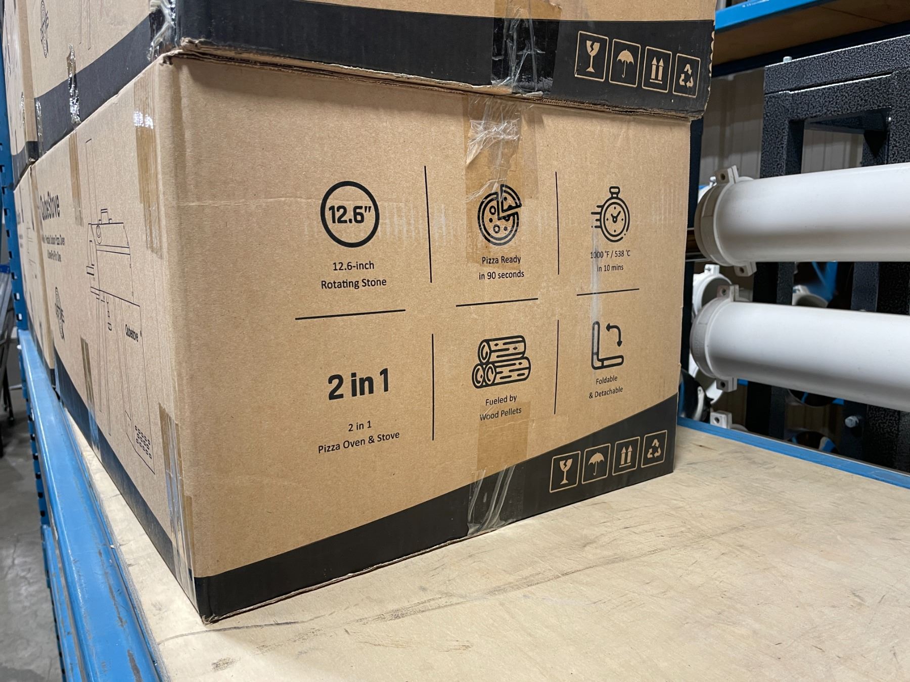 QUBESTOVE 2 IN 1 STAINLESS STEEL 12.6" PROPANE PORTABLE OUTDOOR PIZZA OVEN & STOVE FULLY INSULATED WITH FOLDABLE/DETACHABLE LEGS, REACHES 538 DEGREES CELSIUS IN 10 MINS INCLUDES 12.6" ROTATING PIZZA STONE & HOSE *IN BOX*