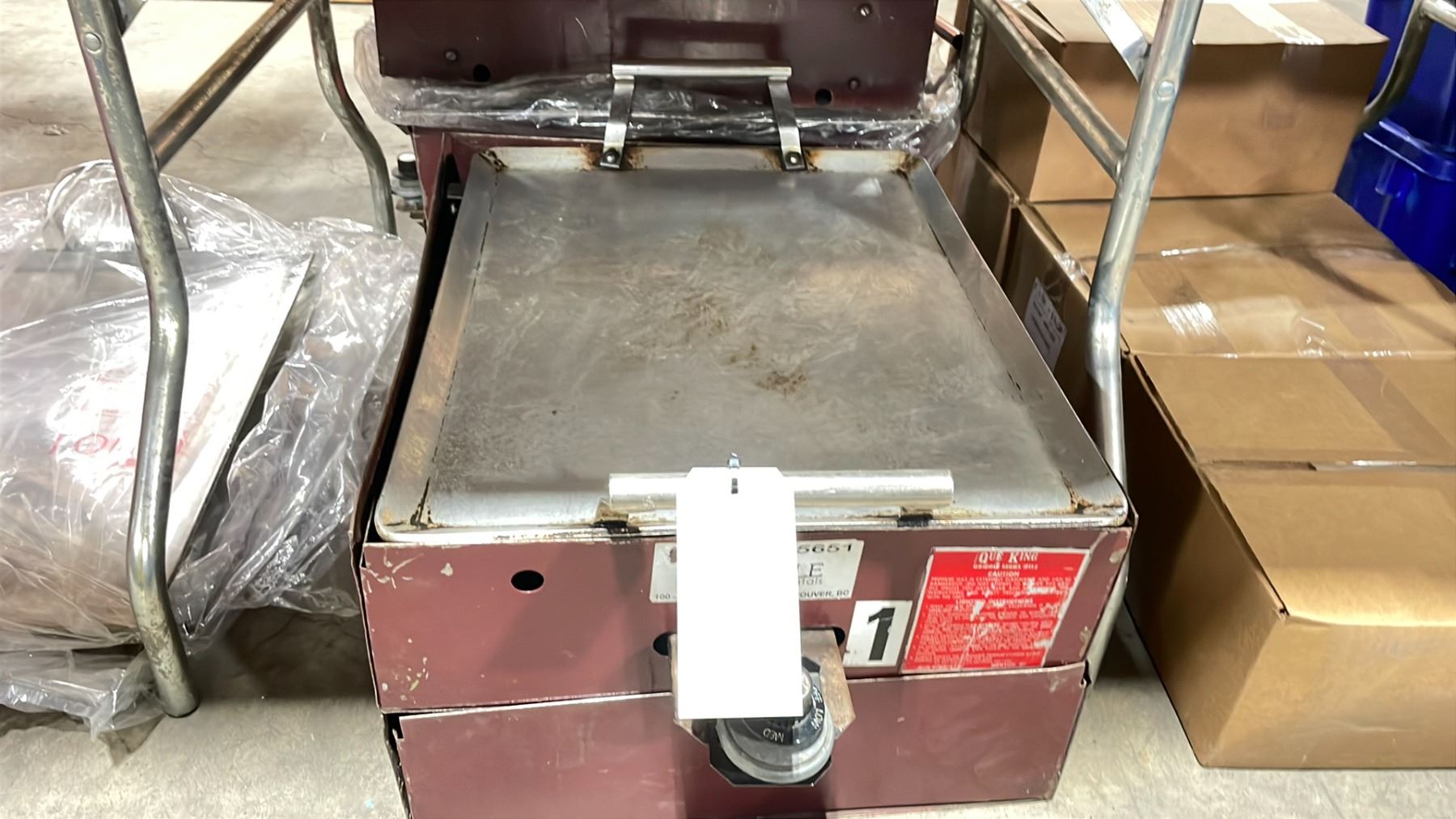 QUE KING SERIES 112 COMMERCIAL COUNTER TOP PROPANE EVENT GRIDDLE WITH TRAY TOP & REGULATOR