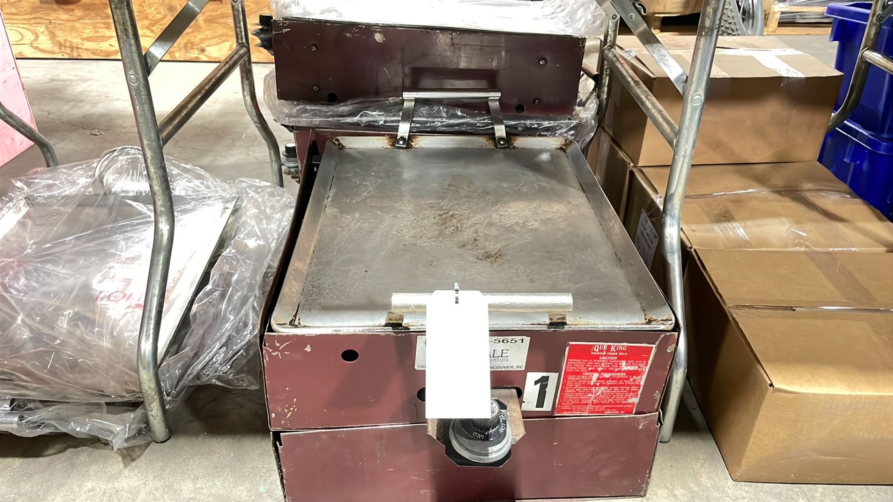 QUE KING SERIES 112 COMMERCIAL COUNTER TOP PROPANE EVENT GRIDDLE WITH TRAY TOP & REGULATOR