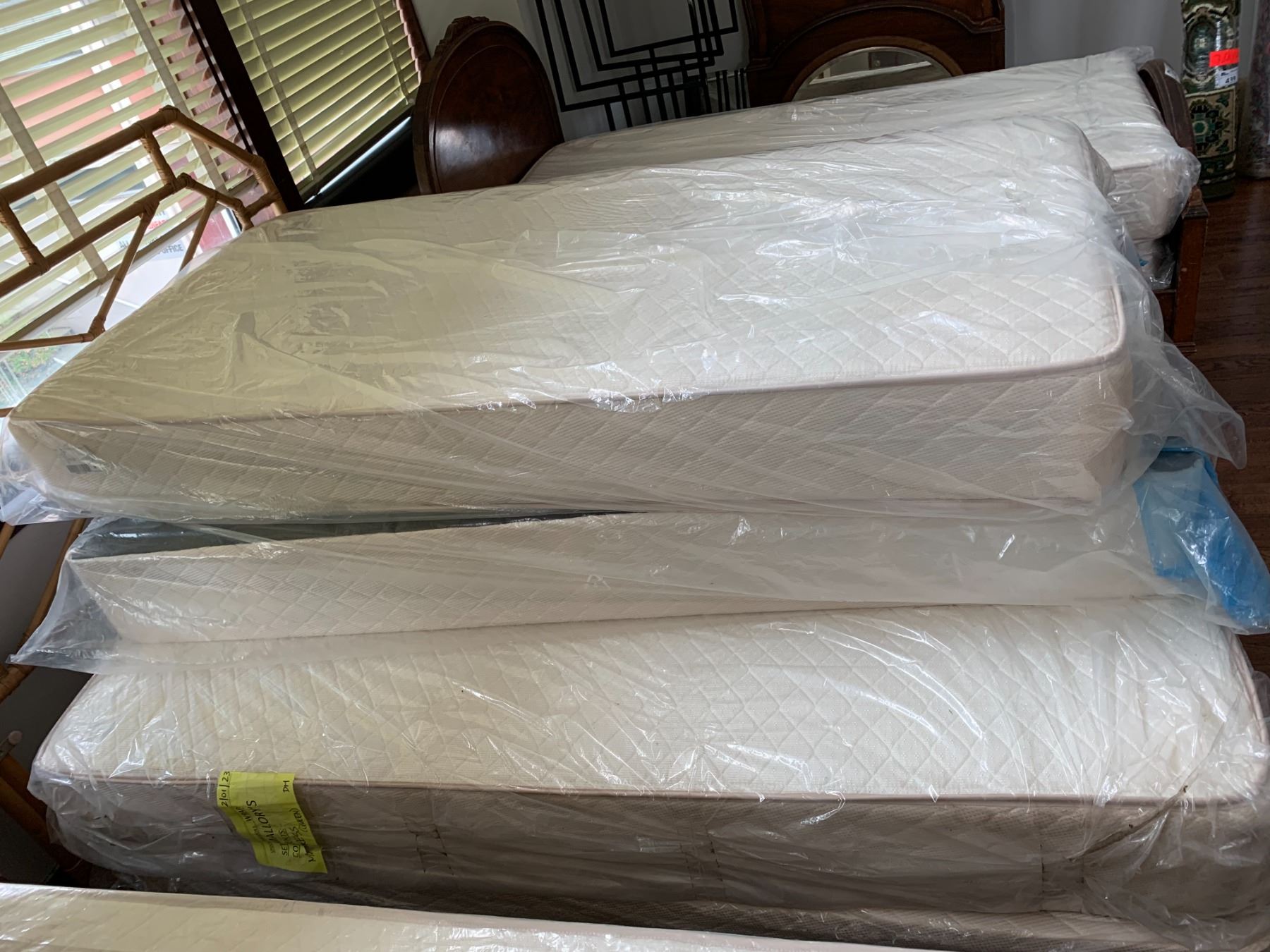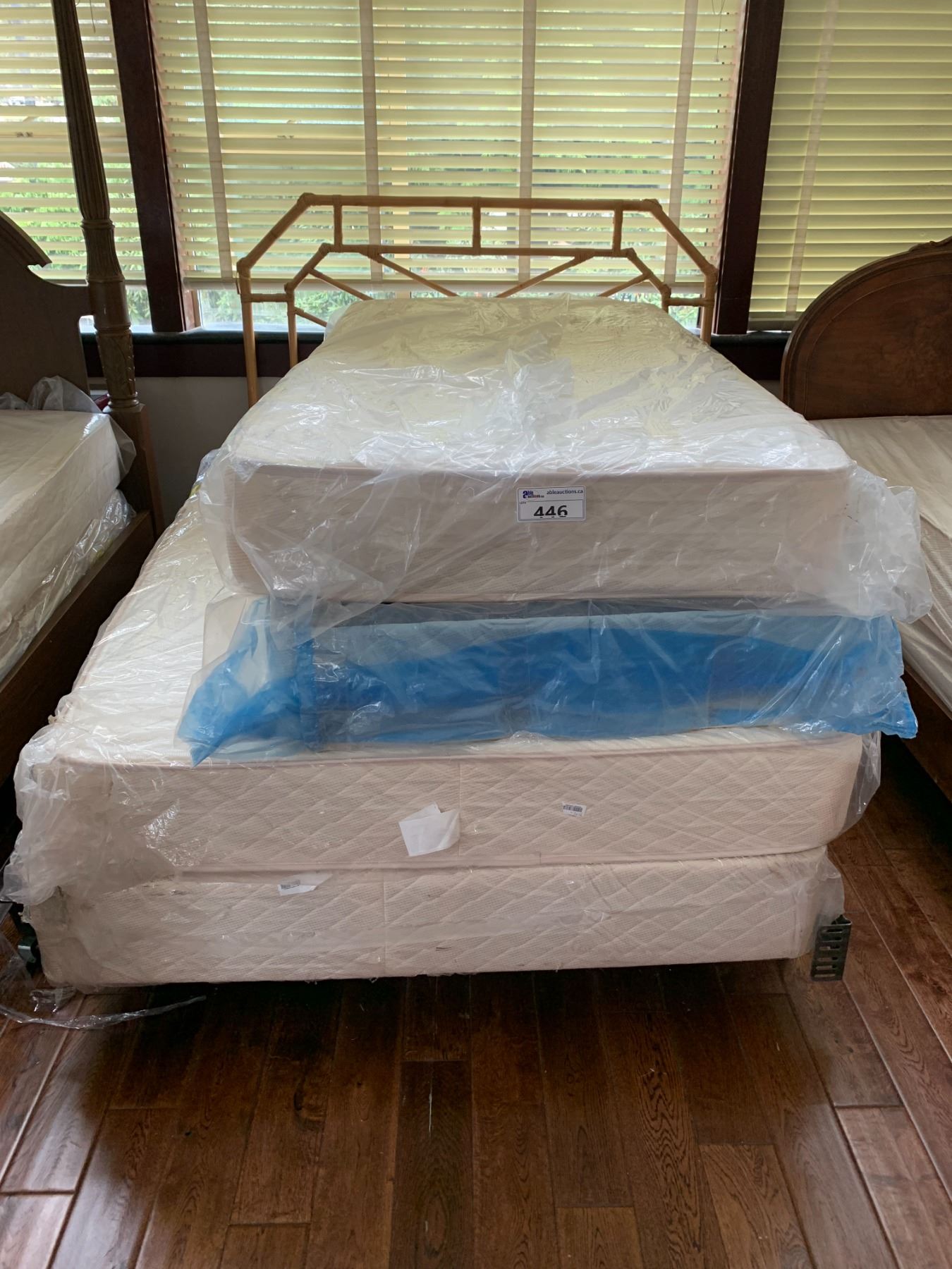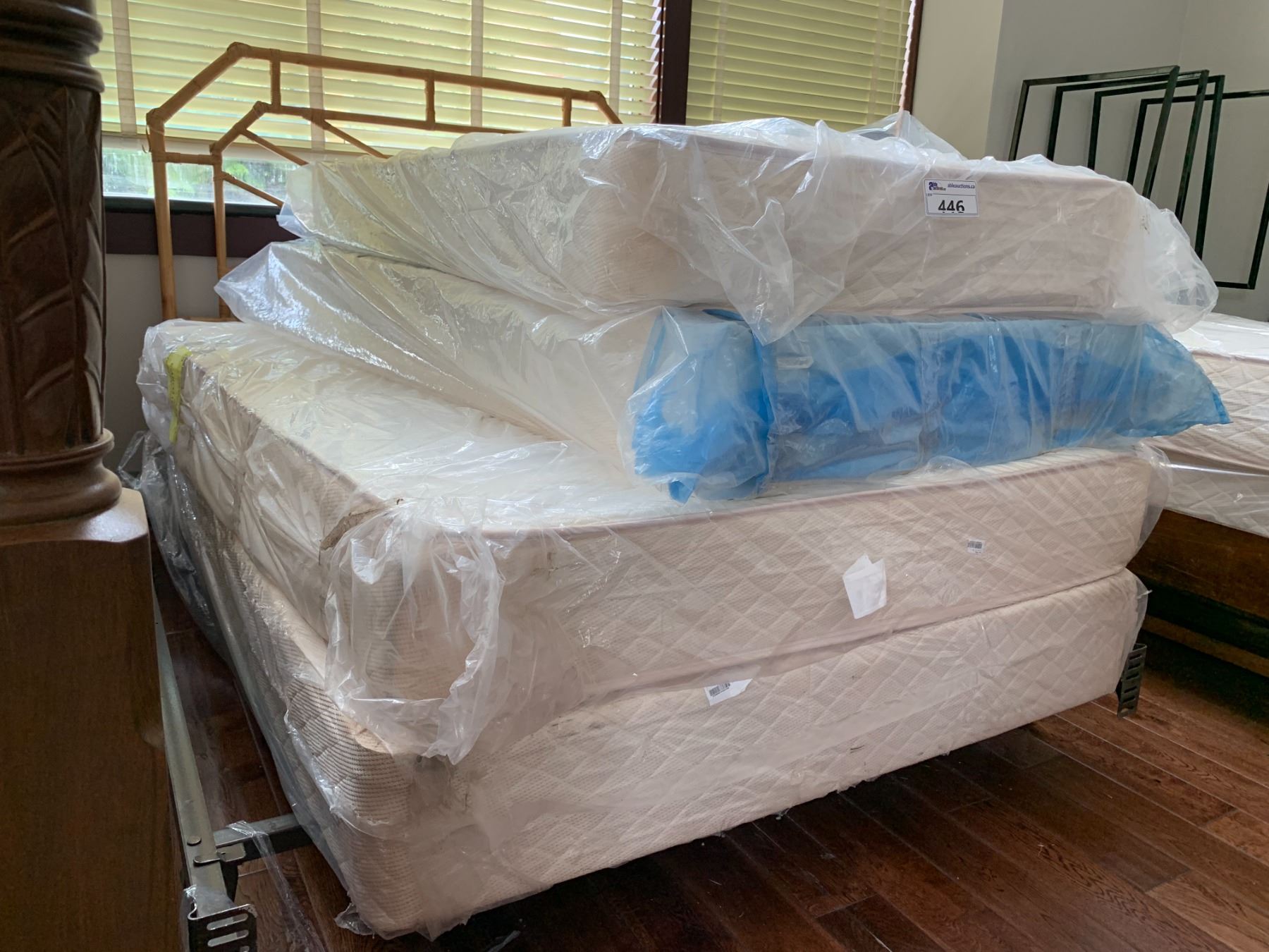 QUEEN SIZE BED FRAME WITH HEADBOARD & 4 ASSORTED MATTRESSES INCLUDING; TWIN & DOUBLE
