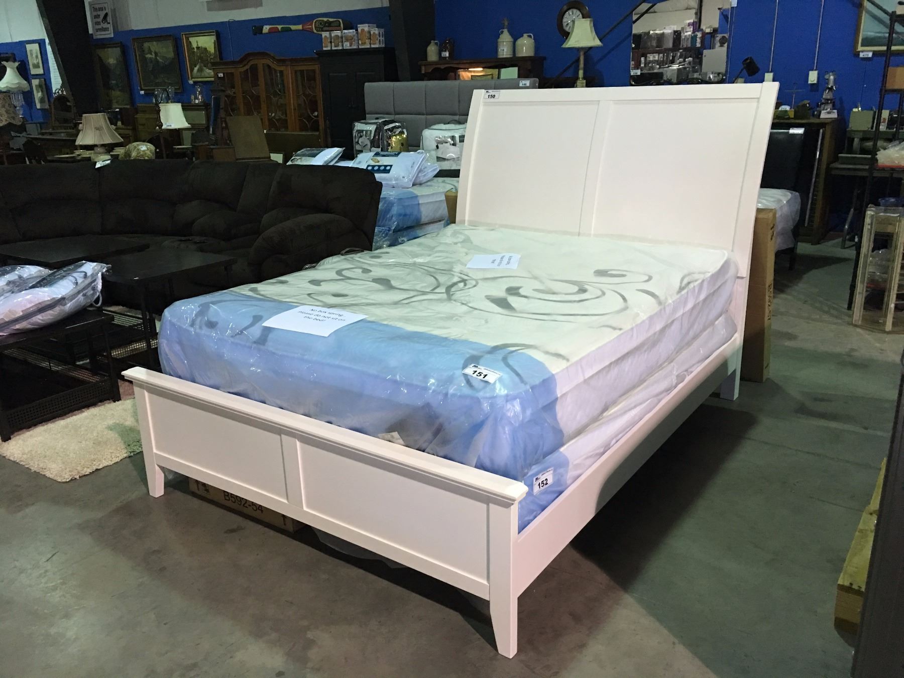 QUEEN SIZE CONTEMPORARY WHITE FINISHED BED HEADBOARD, FOOTBOARD & RAILS (FACTORY SEALED IN BOX)
