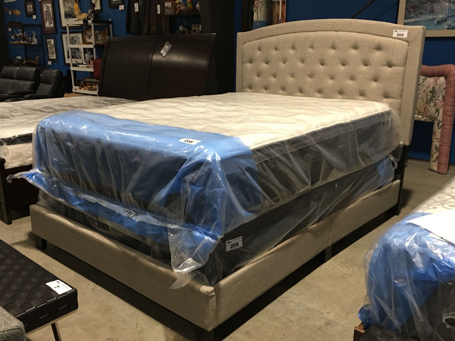 QUEEN SIZE LIGHT GREY UPHOLSTERED BED (HEADBOARD, FOOTBOARD & RAILS)