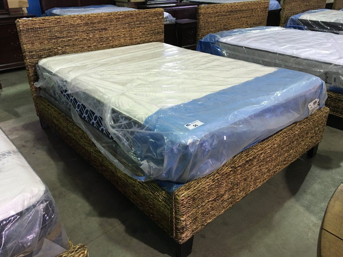 QUEEN SIZED RATTAN BED SET- HEADBOARD, FOOTBOARD RAILS