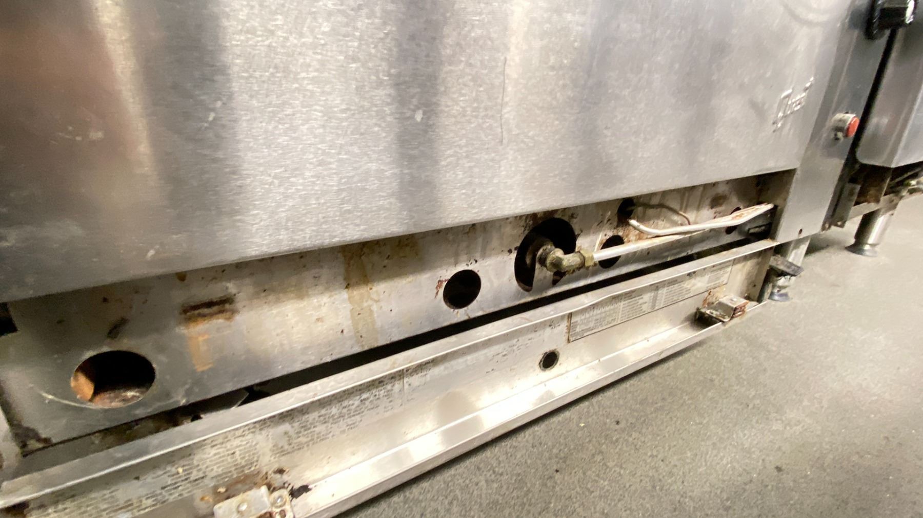 QUEST GAS RANGE WITH ATTACHED OVERHEAD WARMER. MODEL QGR100000. ON WHEELS. 36"W