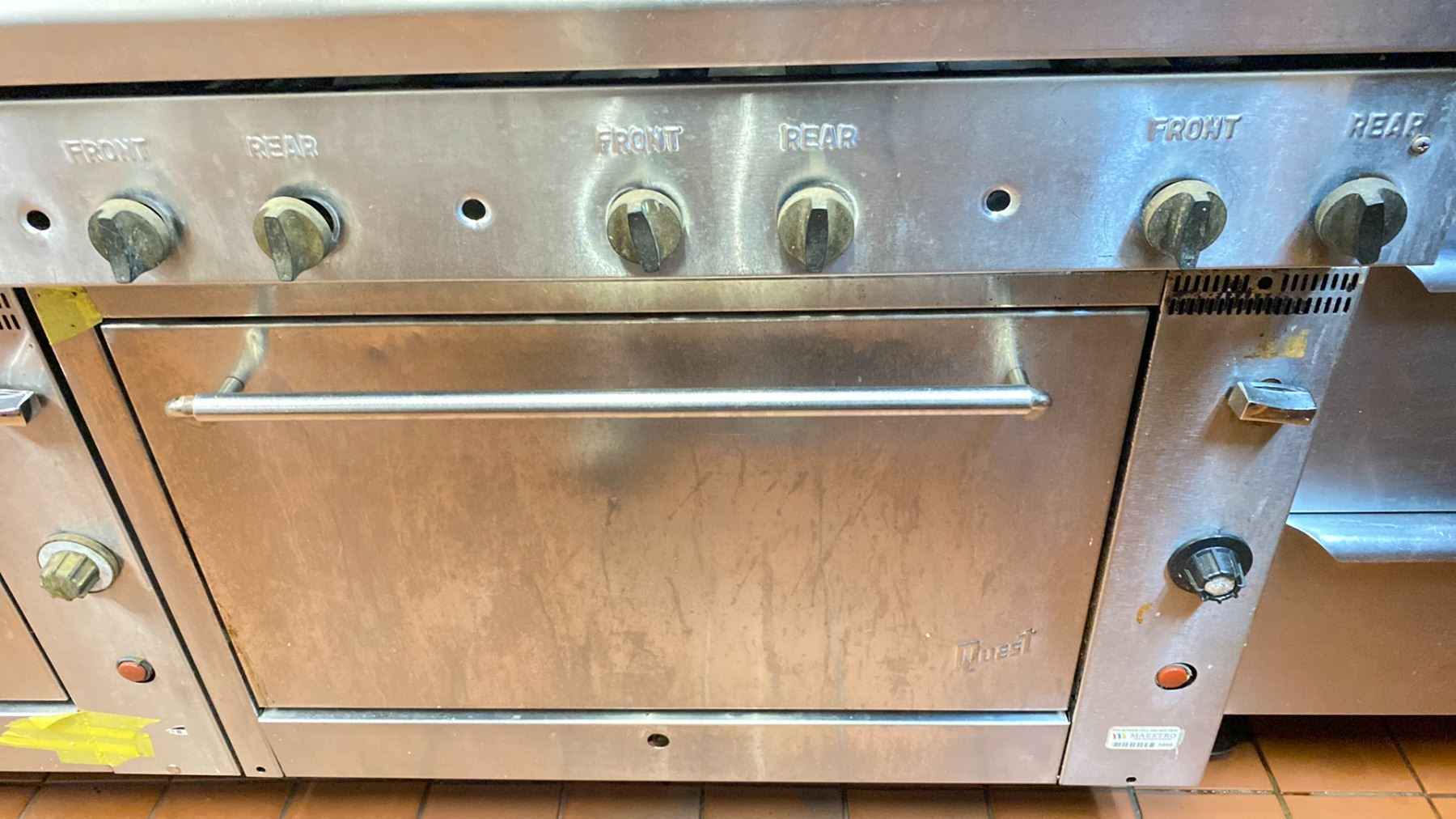 QUEST STAINLESS STEEL 6 BURNER GAS STOVE APPROX 41"H X 38"D X 37" W