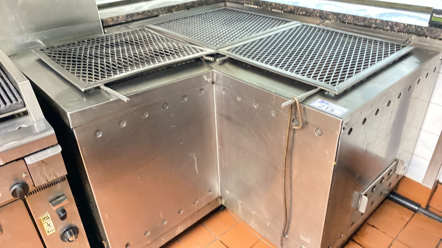 QUEST STAINLESS STEEL WOOD FED CHARBROILER COOKING AREA APPROX 4FT X 2 FT AND 2FT X2 FT L SHAPE COOKING AREA