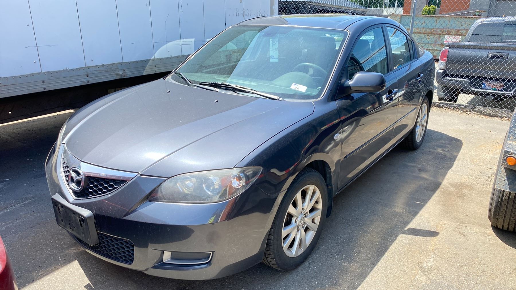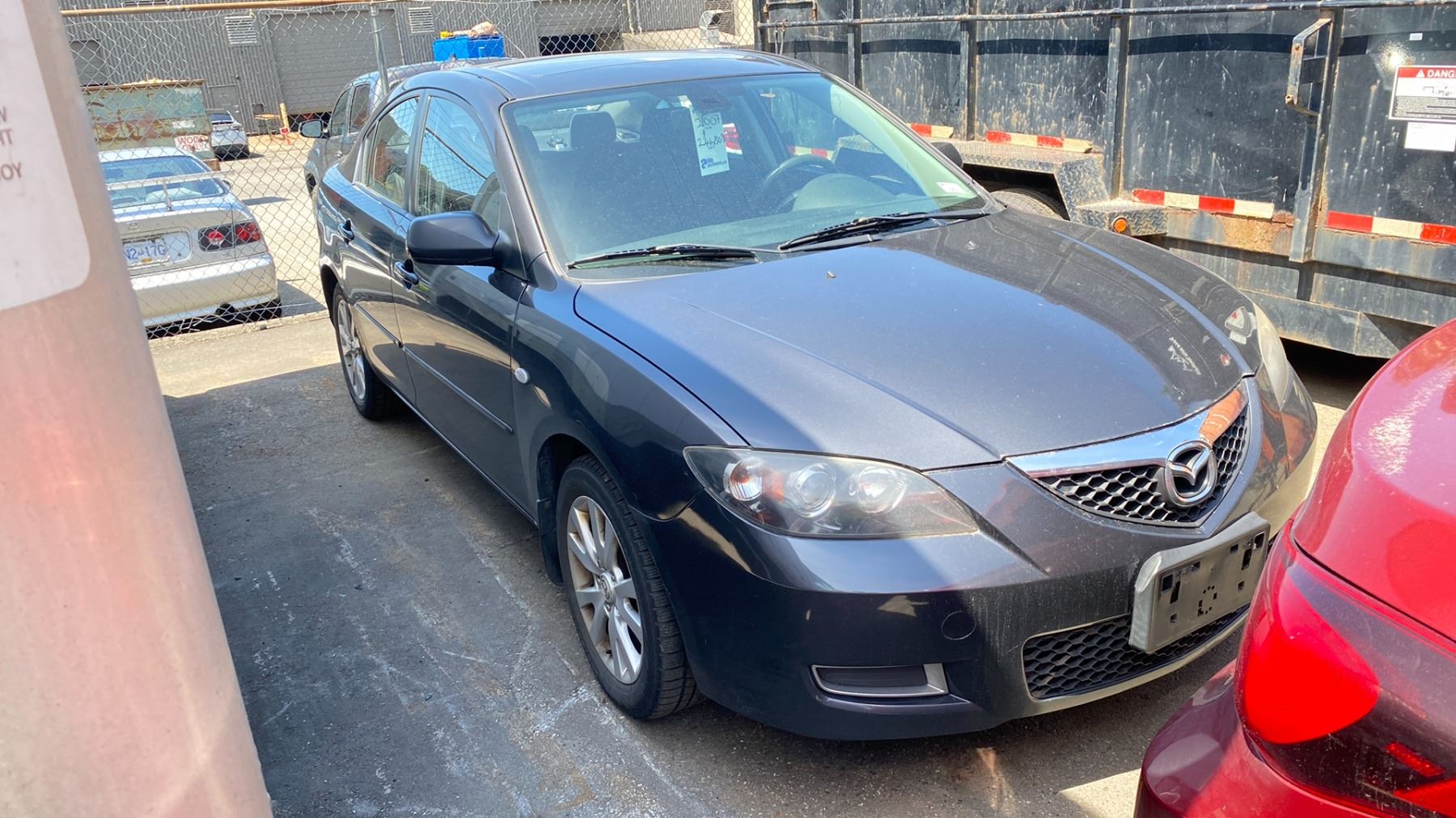 *R* 2007 MAZDA 3, 4DR SEDAN, GREY, VIN JM1BK32F471614401, 244,809 KMS, 2.0L DOHC 16 VALVE, GAS, AUTO, KEYS, STARTS, RD, CD, PW, CC, AW, PL, AC, SR, *HAS REGISTRATION* ICBC DECLARATIONS - 1 X NO DETAILS, 3 X REPAIRS TTL $3,294.57, 1 X GLASS REPAIR $795.91