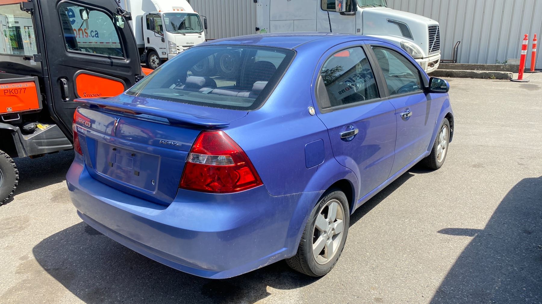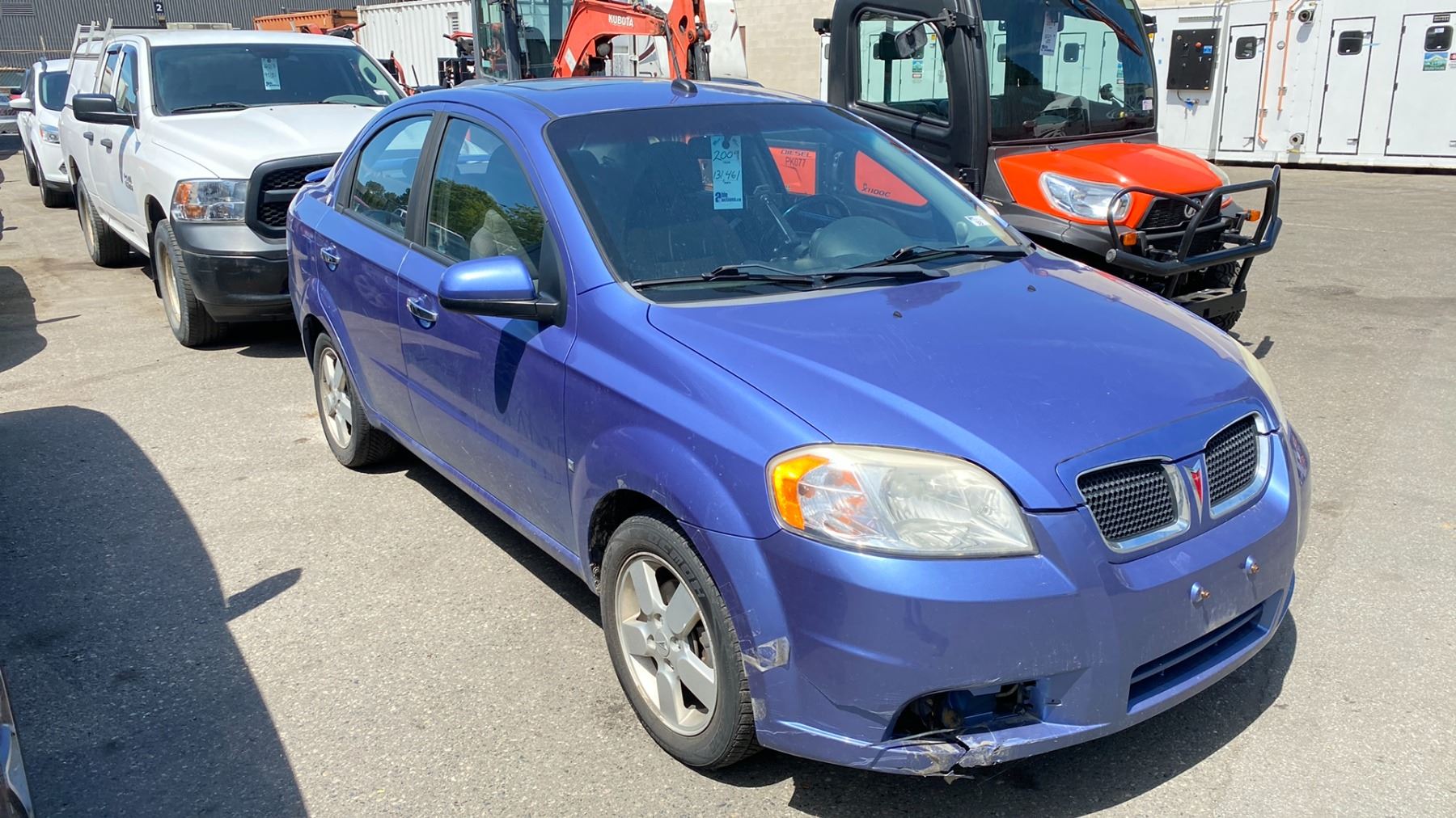 *R* 2009 PONTIAC G3 WAVE, 4DR SEDAN, BLUE, VIN KL2TX55E69B356449, 131,461 KMS, GAS, AUTO, 1.6L, KEYS, STARTS, BROKEN FRONT RIGHT FOG LIGHT, BROKEN PASSENGER SIDE FRONT WHEEL WELL, SCRATCHED DRIVER SIDE DOOR HANDLE, SCRATCHES ON ALL 4 DOORS, SCRATCH ON REAR BUMPER LEFT SIDE, RD, CD, PW, CC, QS, PL, TW, AC, SR, *HAS REGISTRATION* ICBC DECLARATION - 1 X REPAIRS $2,758.55, 1 X GLASS REPAIR $571.80