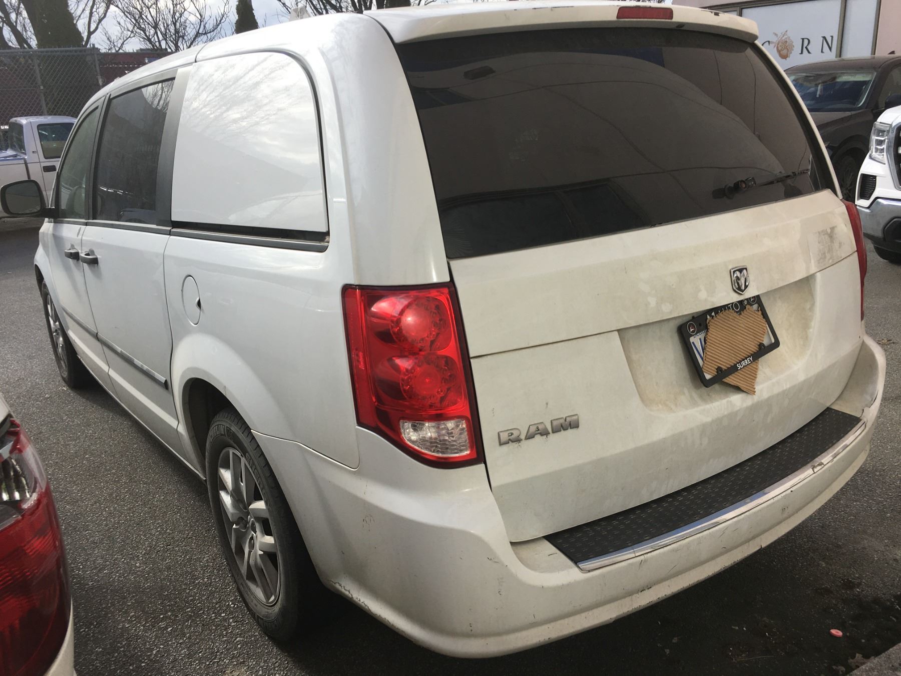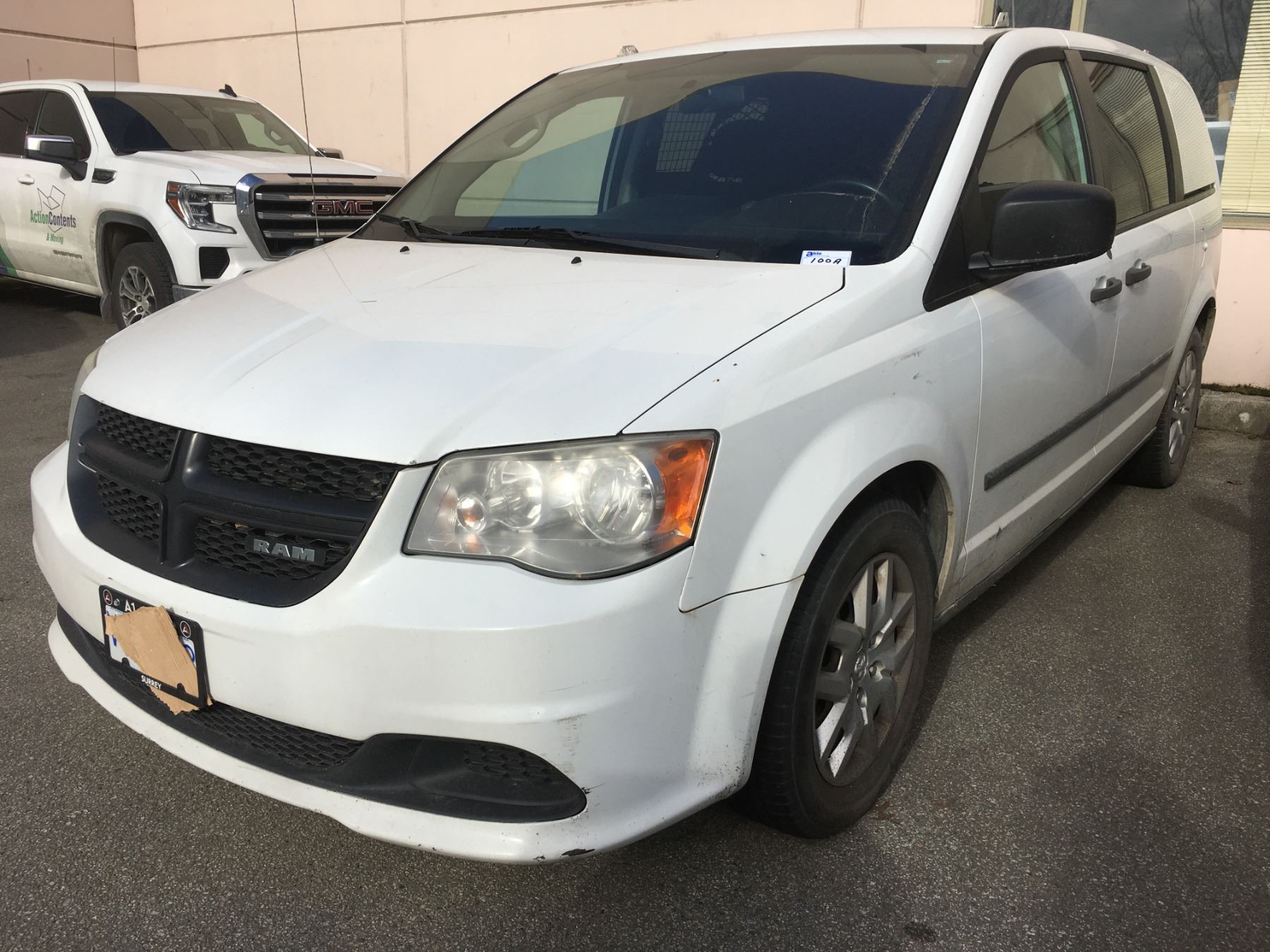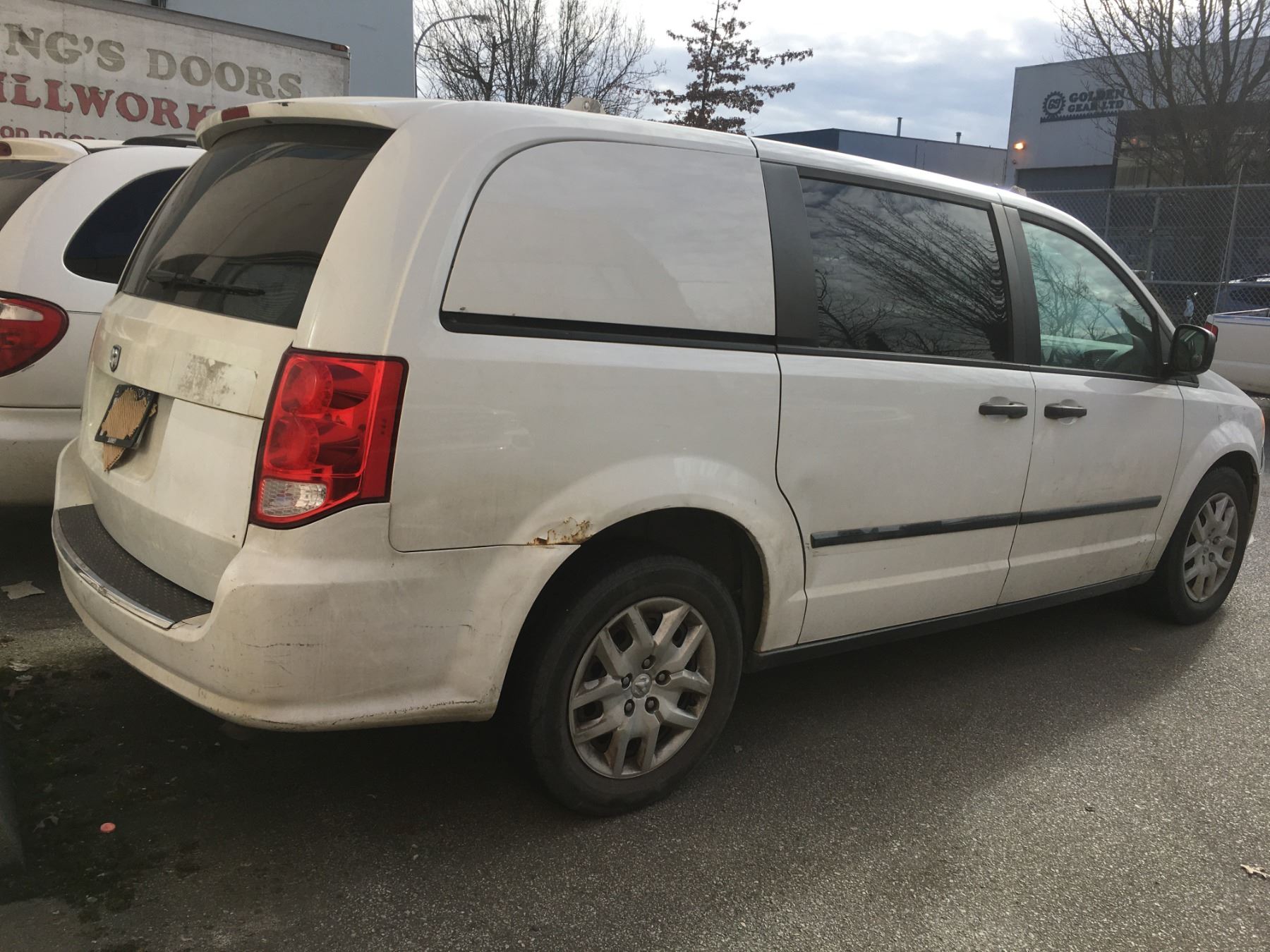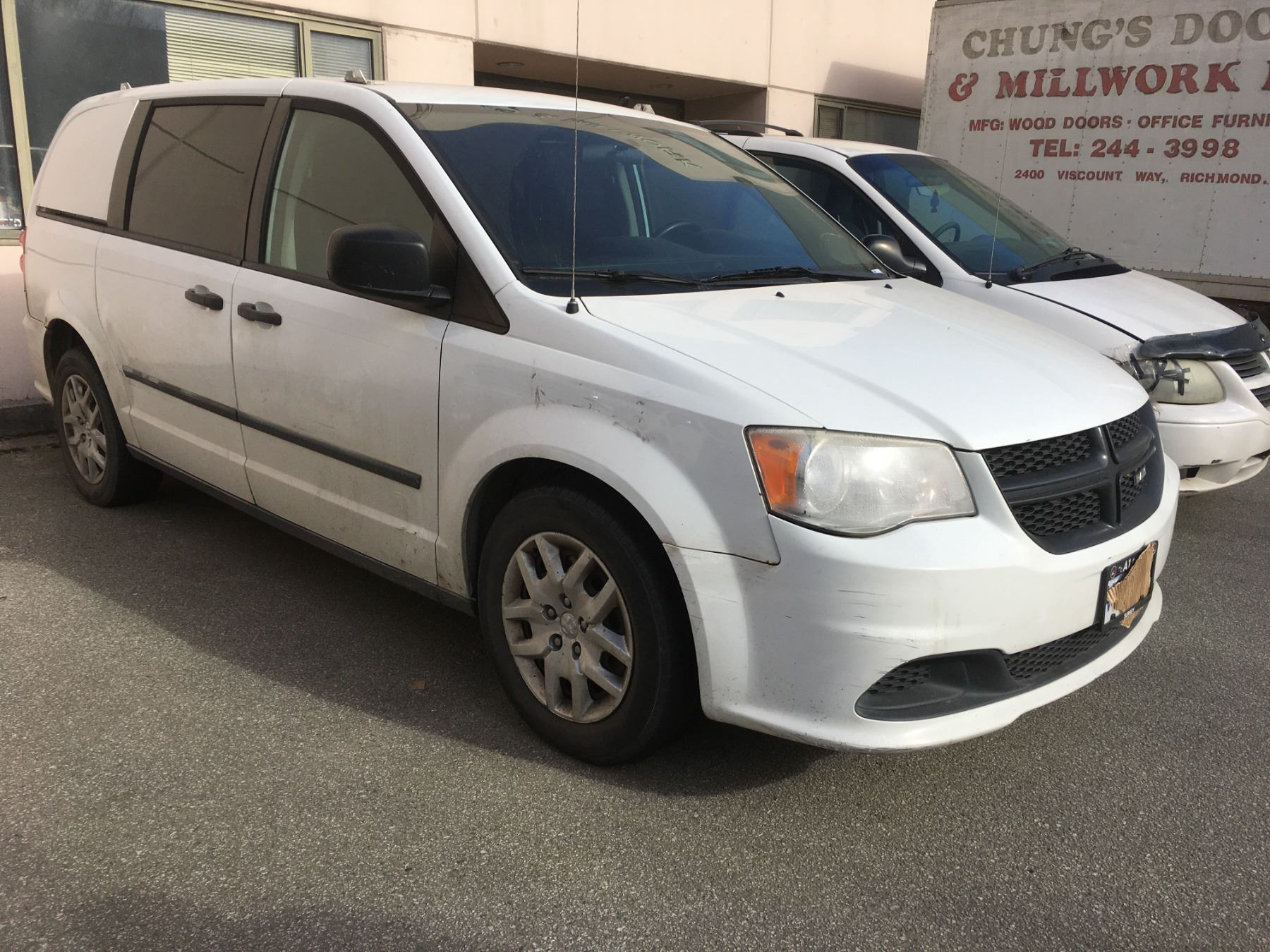 *R* 2014 DODGE CARGO MINI VAN, WHITE, VIN 2C4JRGAG2ER377442, 239,595 KMS, GAS, AUTO, 3.6L, KEYS, STARTS, RD, PW, CC, QS, AW, PL, AC, LT, RI,  BACK PASSENGER SIDE IS CRACKED, DENTED AND SOME RUST, SCRATCHED, MINOR RUST AND PAINT   PEELING, OOP *HAS BC REGISTRATION* 1 X NO DETAILS IN ONT, BC HAS NO ICBC DECLARATIONS