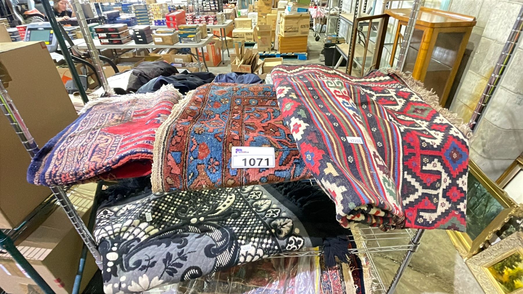 RACK OF ASSORTED AREA RUGS (RACK NOT INCLUDED)