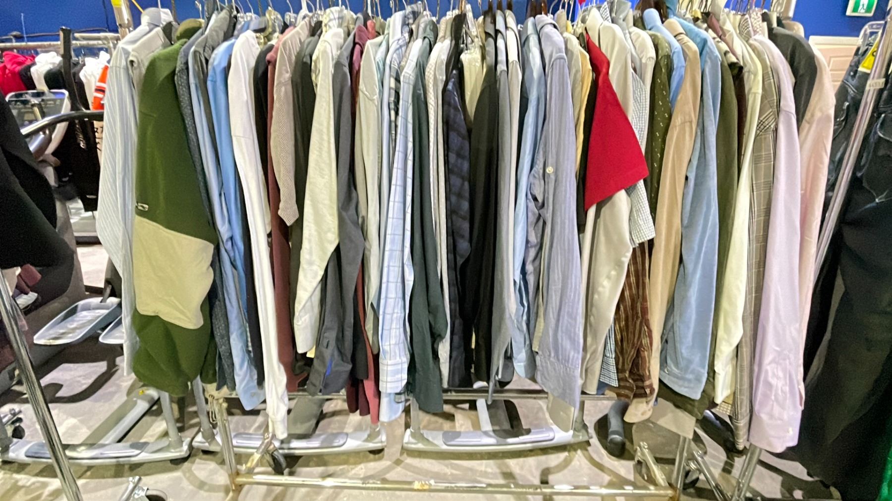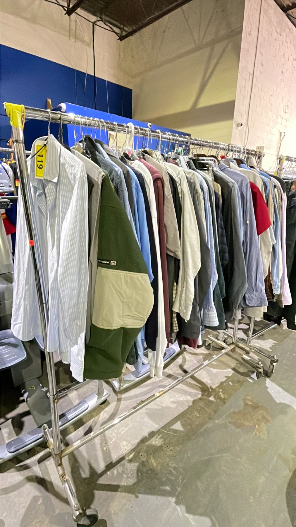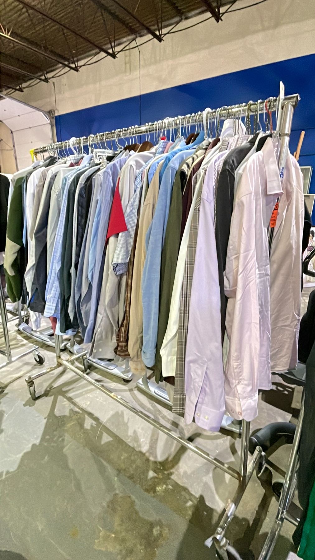 RACK OF ASSORTED CLOTHING INCLUDING; DRESS SHIRTS, SWEATERS, T-SHIRTS AND MORE *RACK NOT INCLUDED*