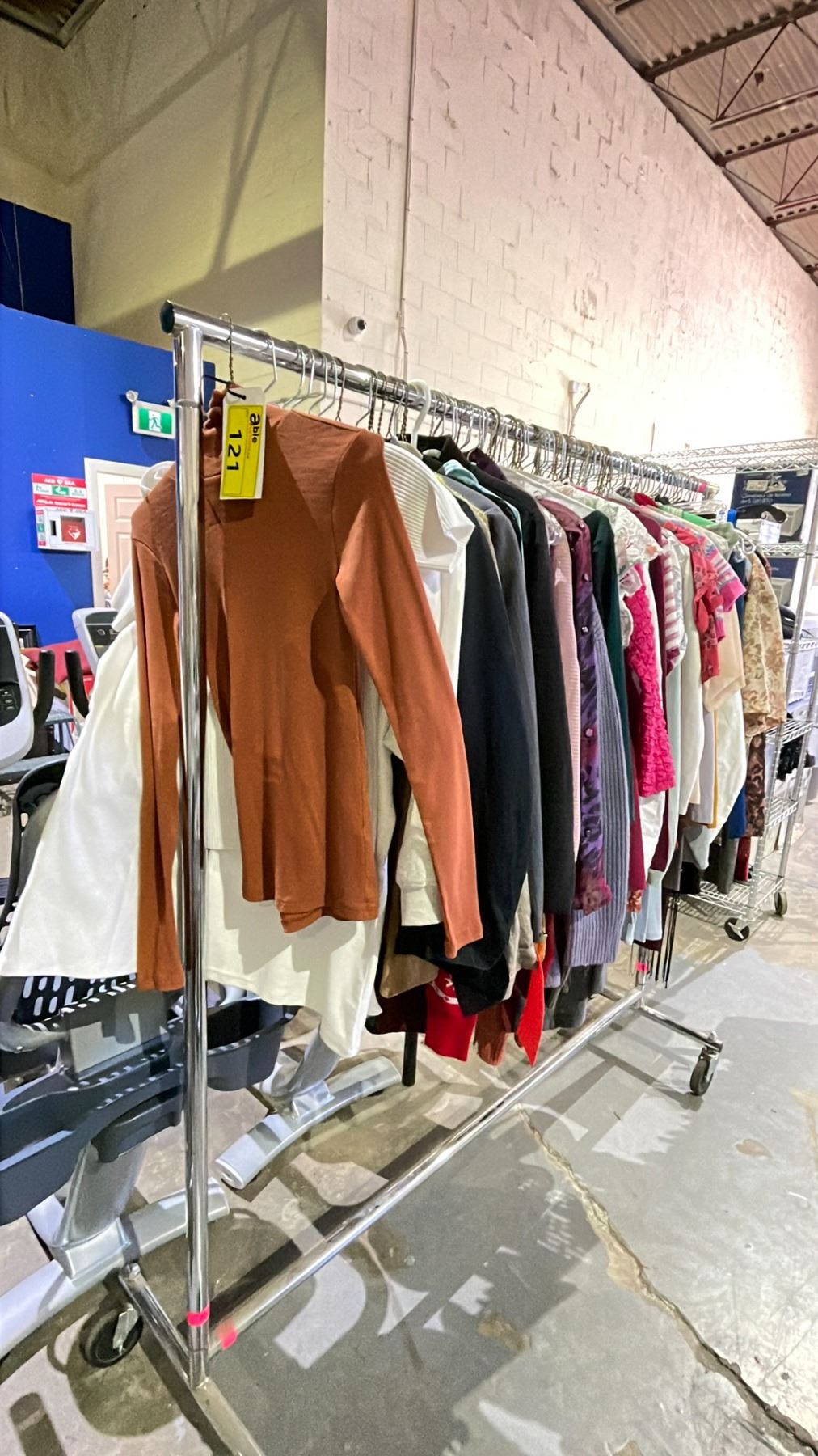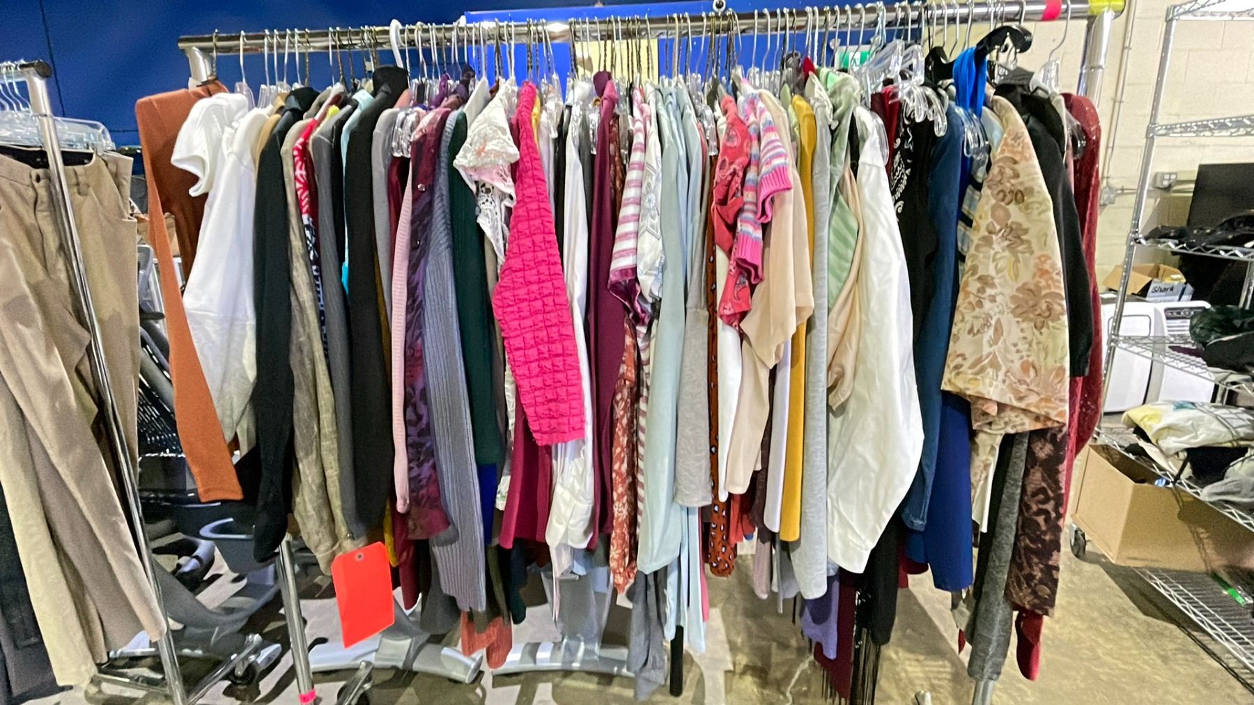 RACK OF ASSORTED CLOTHING INCLUDING; SHIRTS, TANK TOPS, SWEATERS AND MORE *RACK NOT INCLUDED*