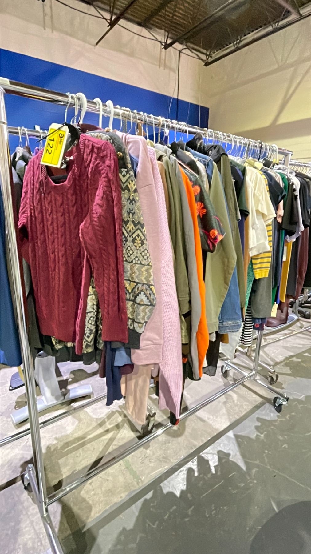 RACK OF ASSORTED CLOTHING INCLUDING; SWEATERS, HOODIES, SHIRTS AND MORE *RACK NOT INCLUDED*