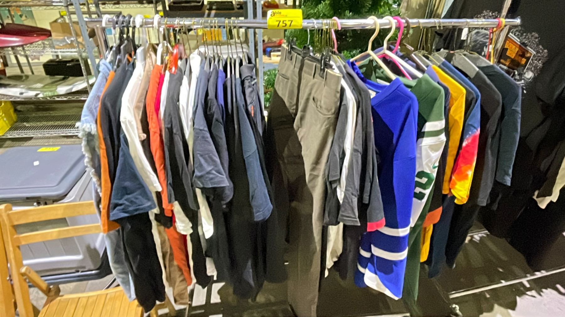 RACK OF ASSORTED CLOTHING (RACK NOT INCLUDED)