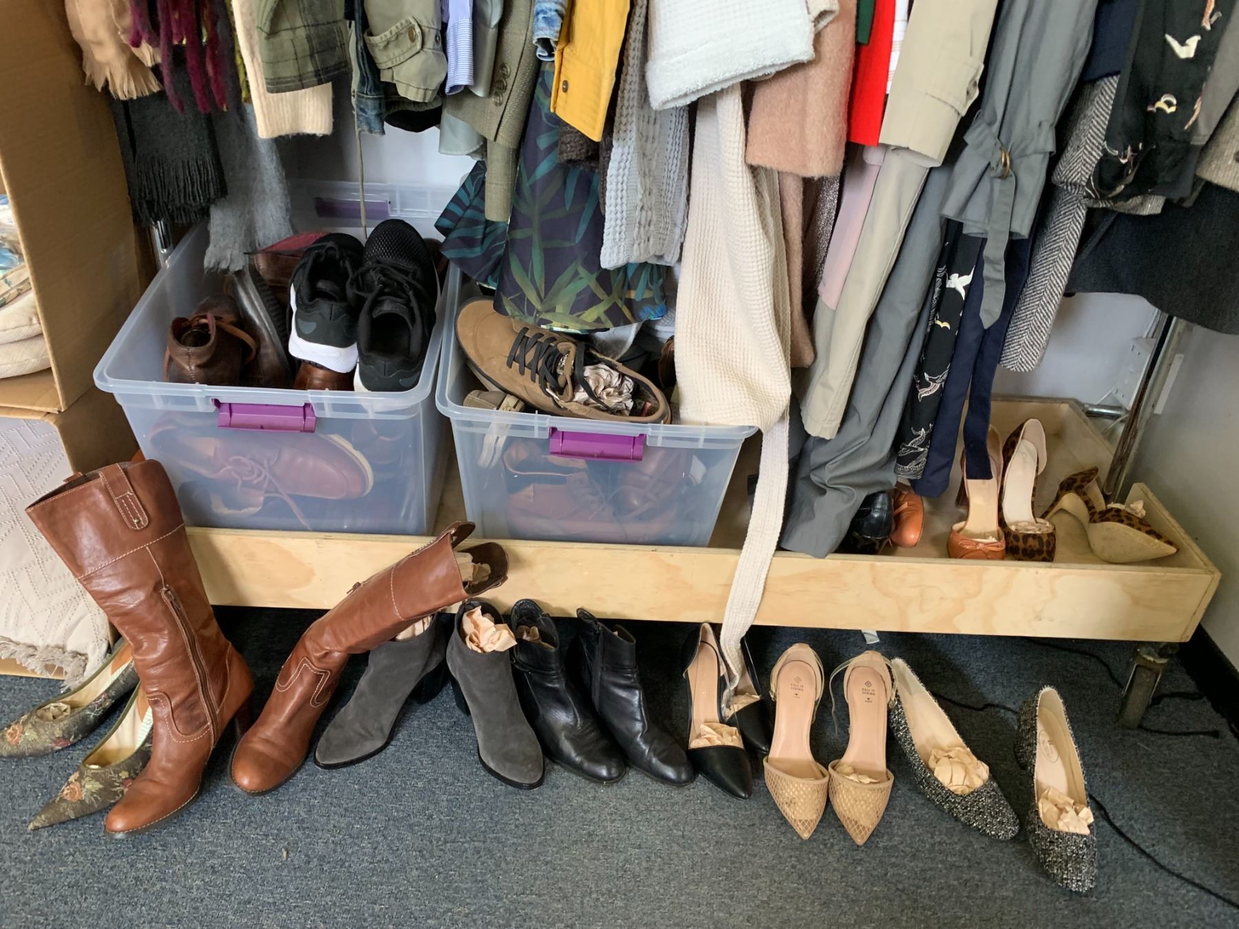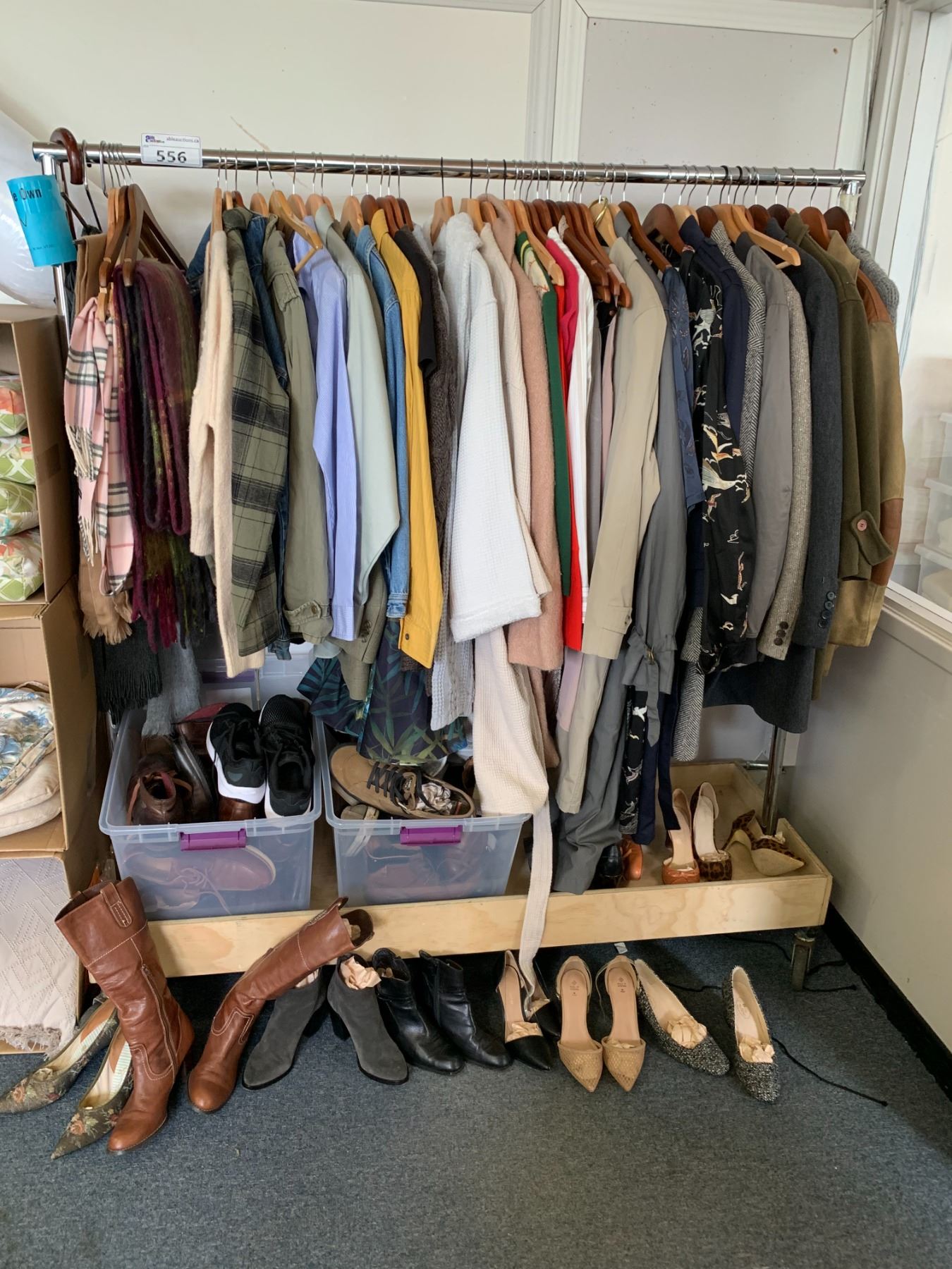 RACK OF ASSORTED CLOTHING & SHOES