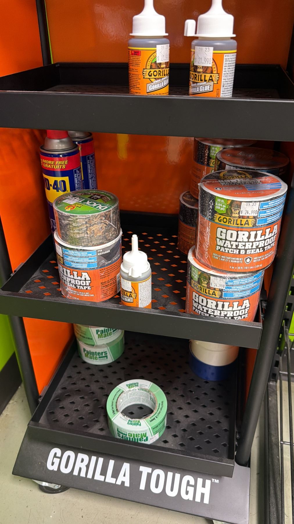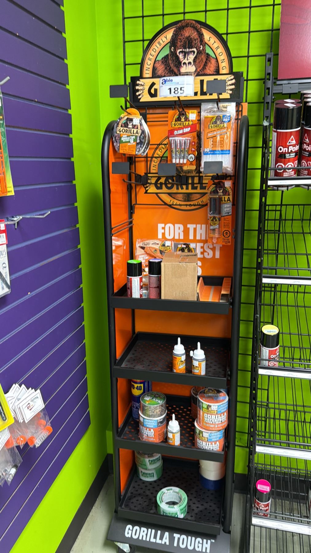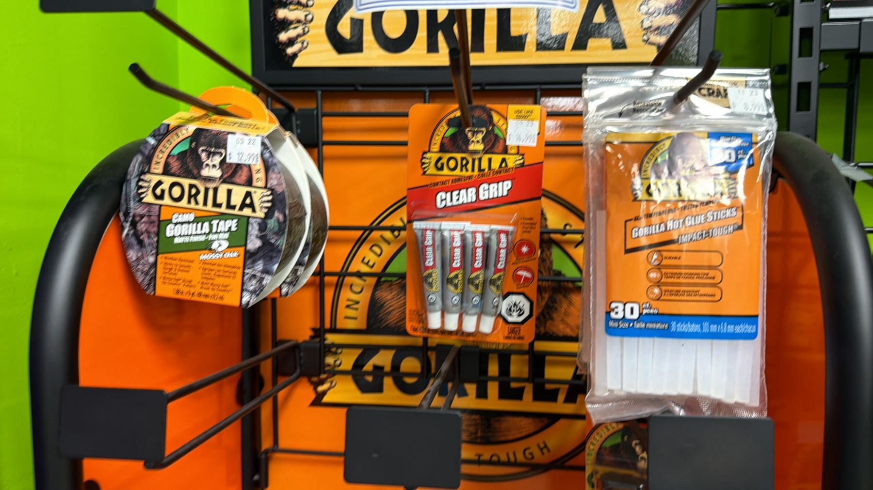 RACK OF ASSORTED GORILLA GLUE ADHESIVE PRODUCTS *RACK INCLUDED*
