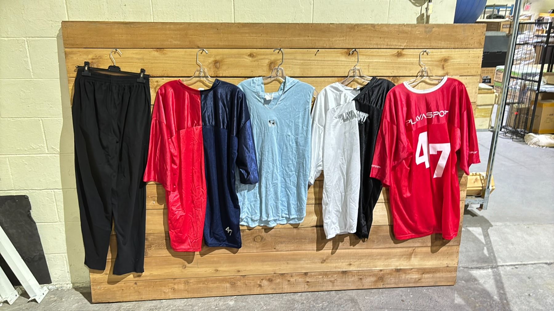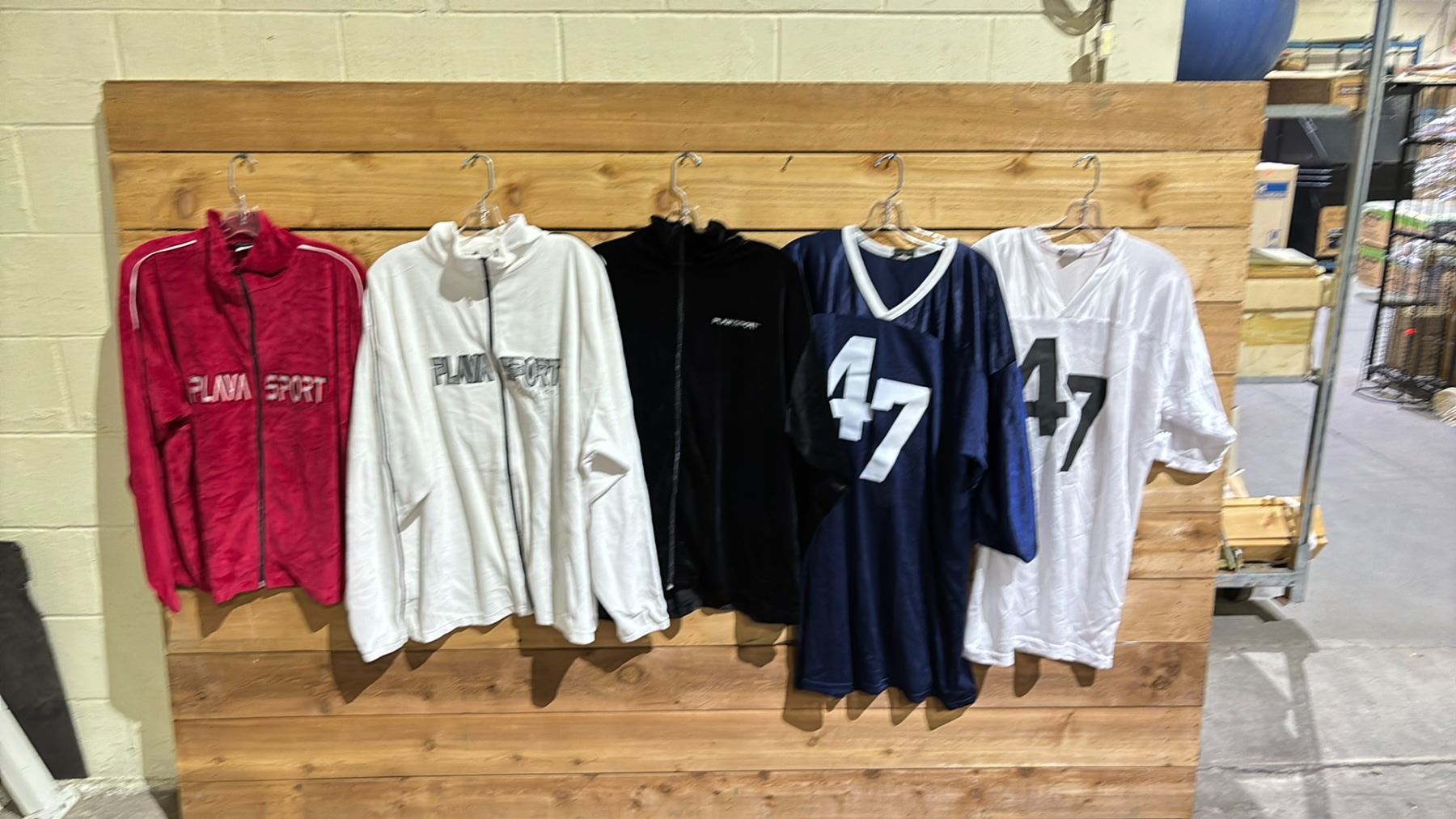 RACK OF ASSORTED PLAY SPORT CLOTHING INCLUDING; SWEATPANTS, SWEATERS AND MORE *RACK NOT INCLUDED/ TOP PORTION ONLY*