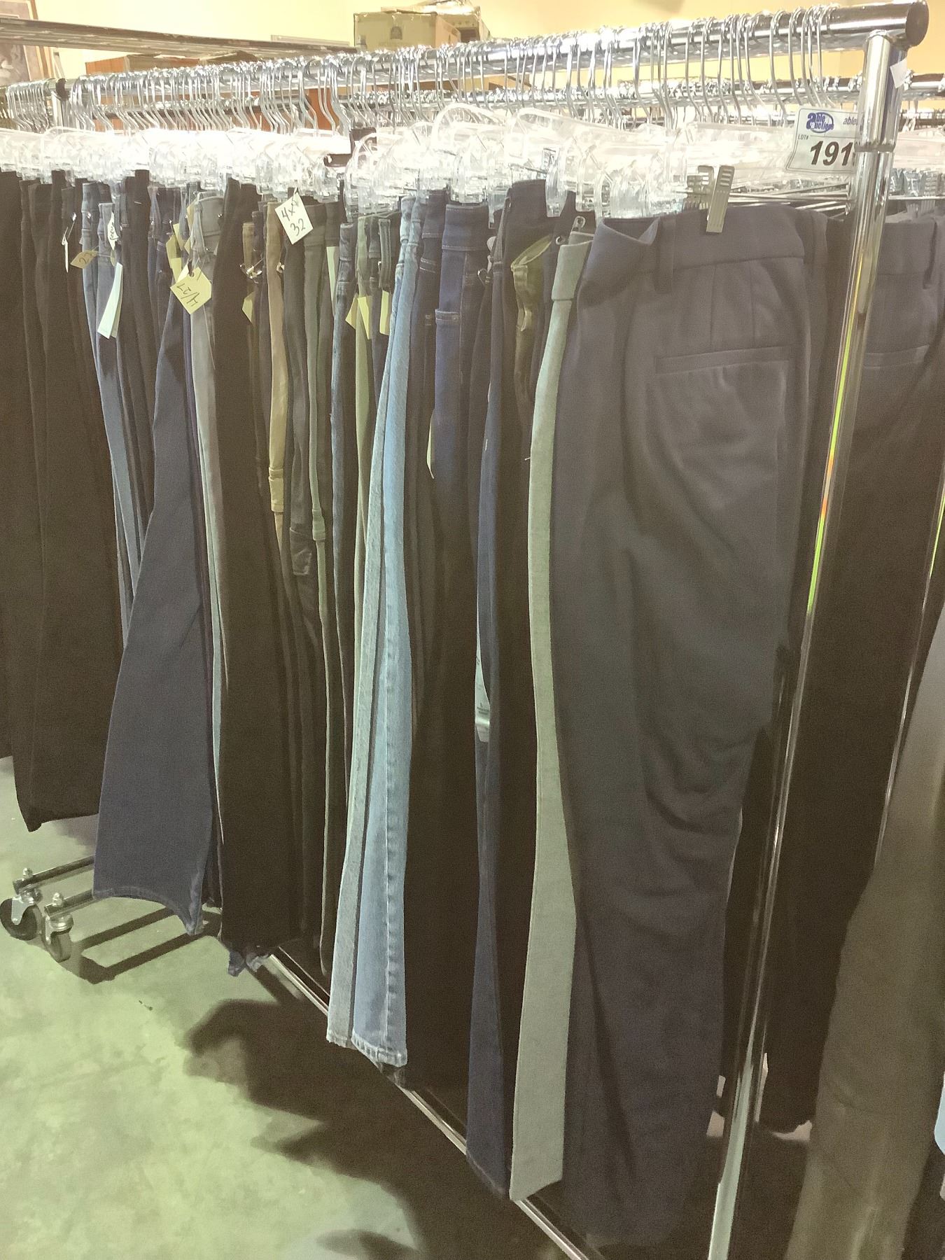 RACK OF ASSORTED SIZE PANTS, JEANS, ETC (RACK NOT INCLUDED)