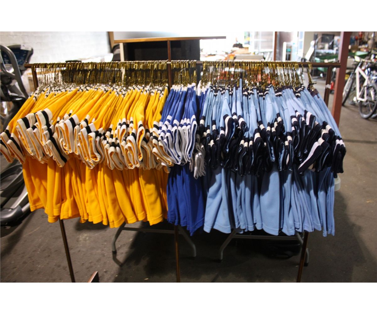 RACK OF ASSORTED SOCCER TEAM JERSEYS