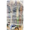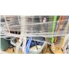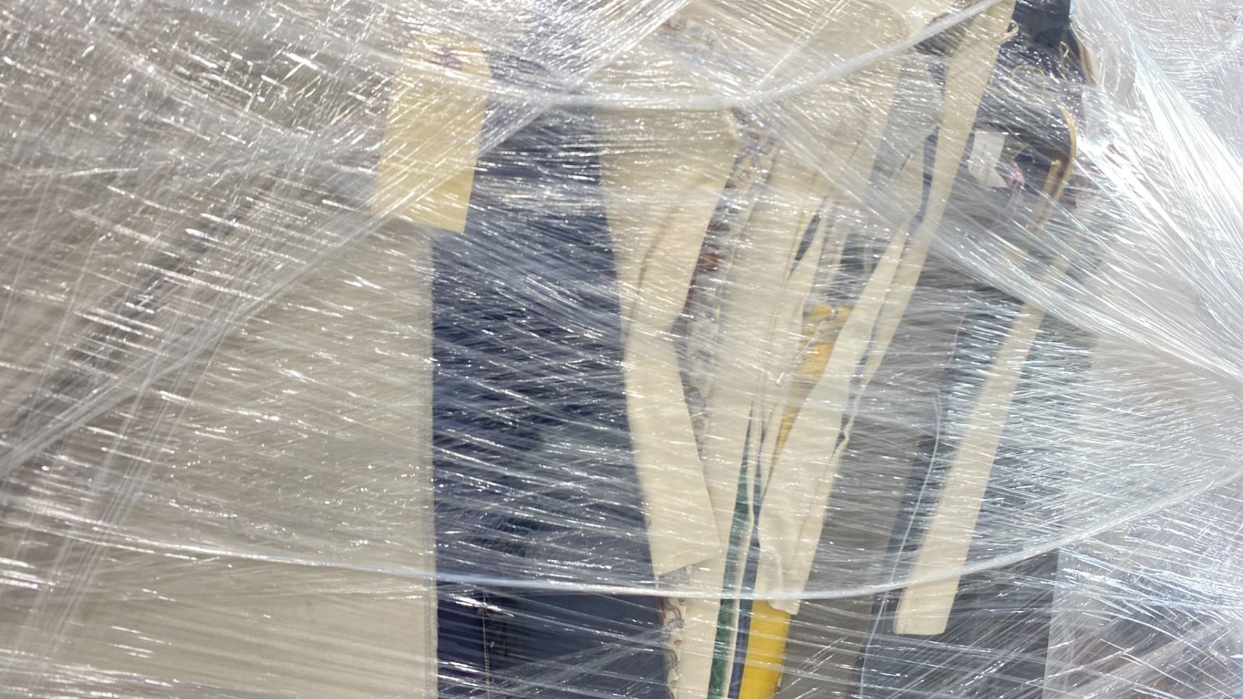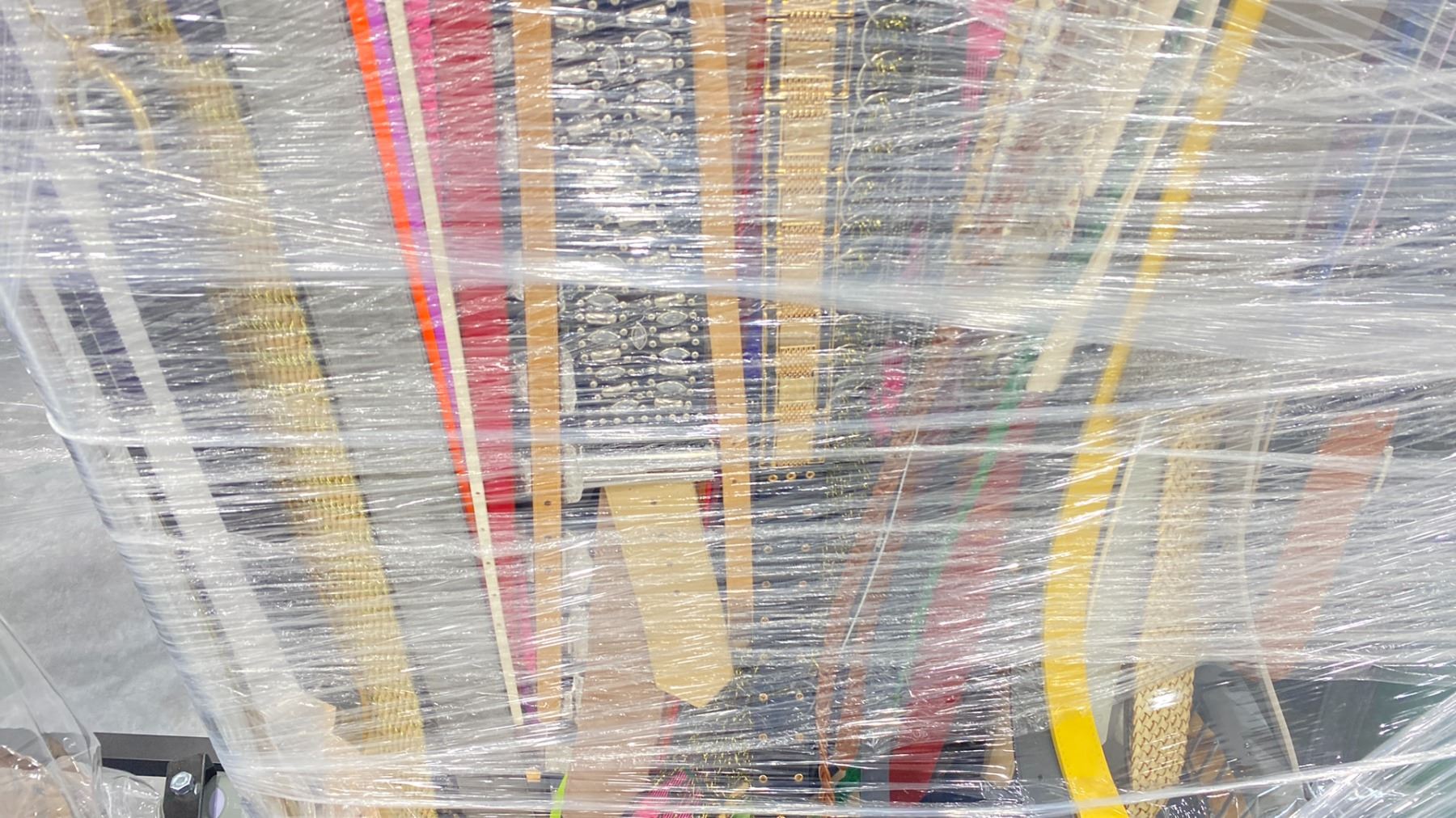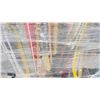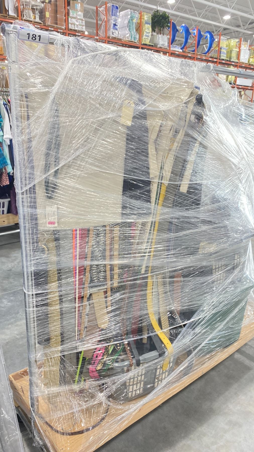 RACK OF ASSORTED WARDROBE BELTS & CANVAS GARMENT BAGS