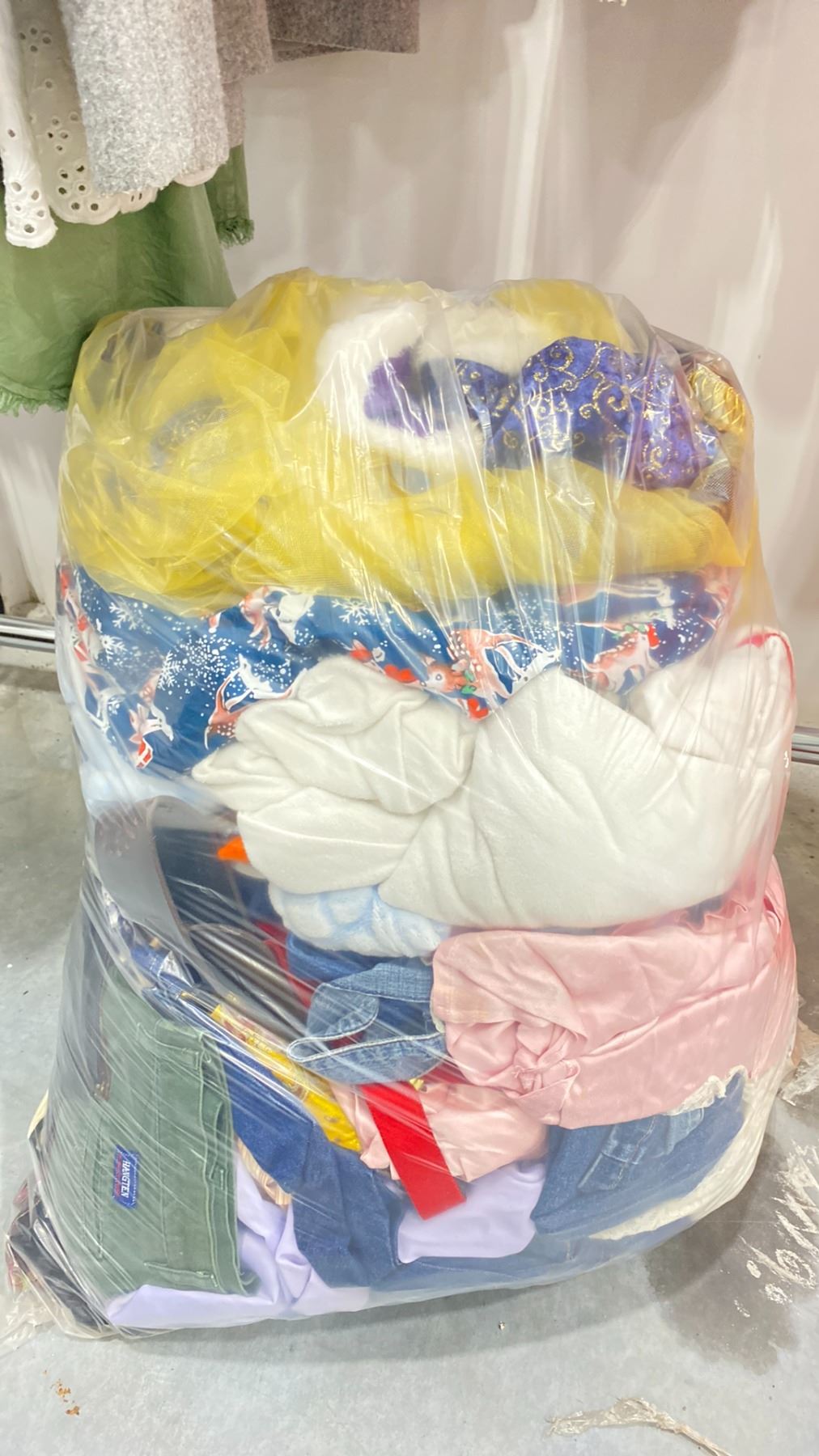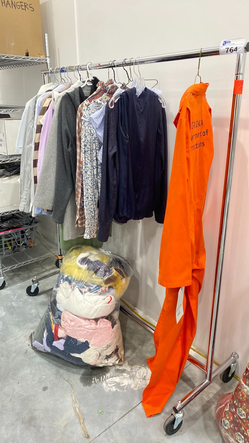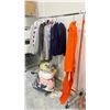 RACK OF ASSORTED WARDROBE CLOTHING (RACK INCLUDED & MUST BE TAKEN) & BAG OF CLOTHING