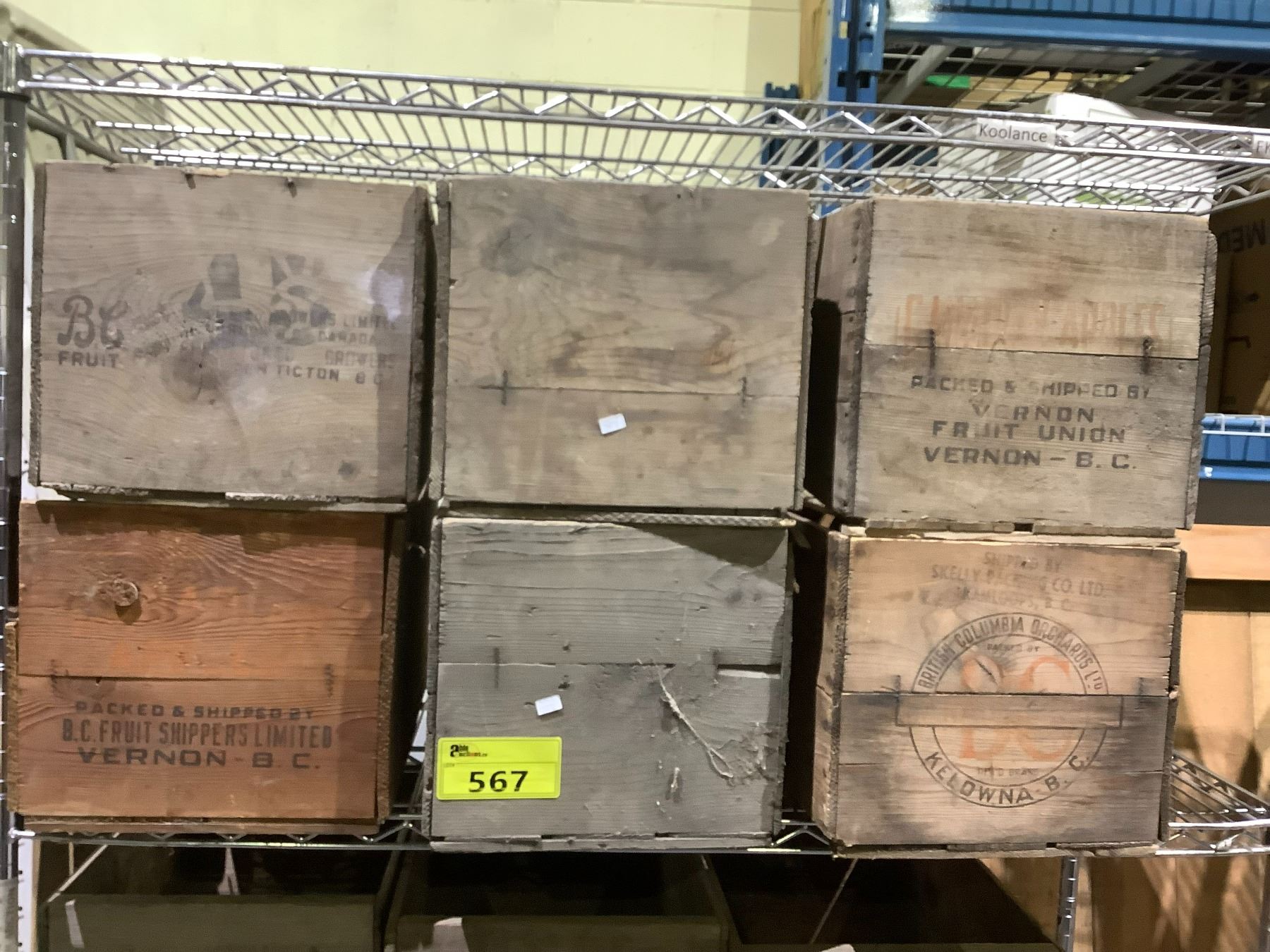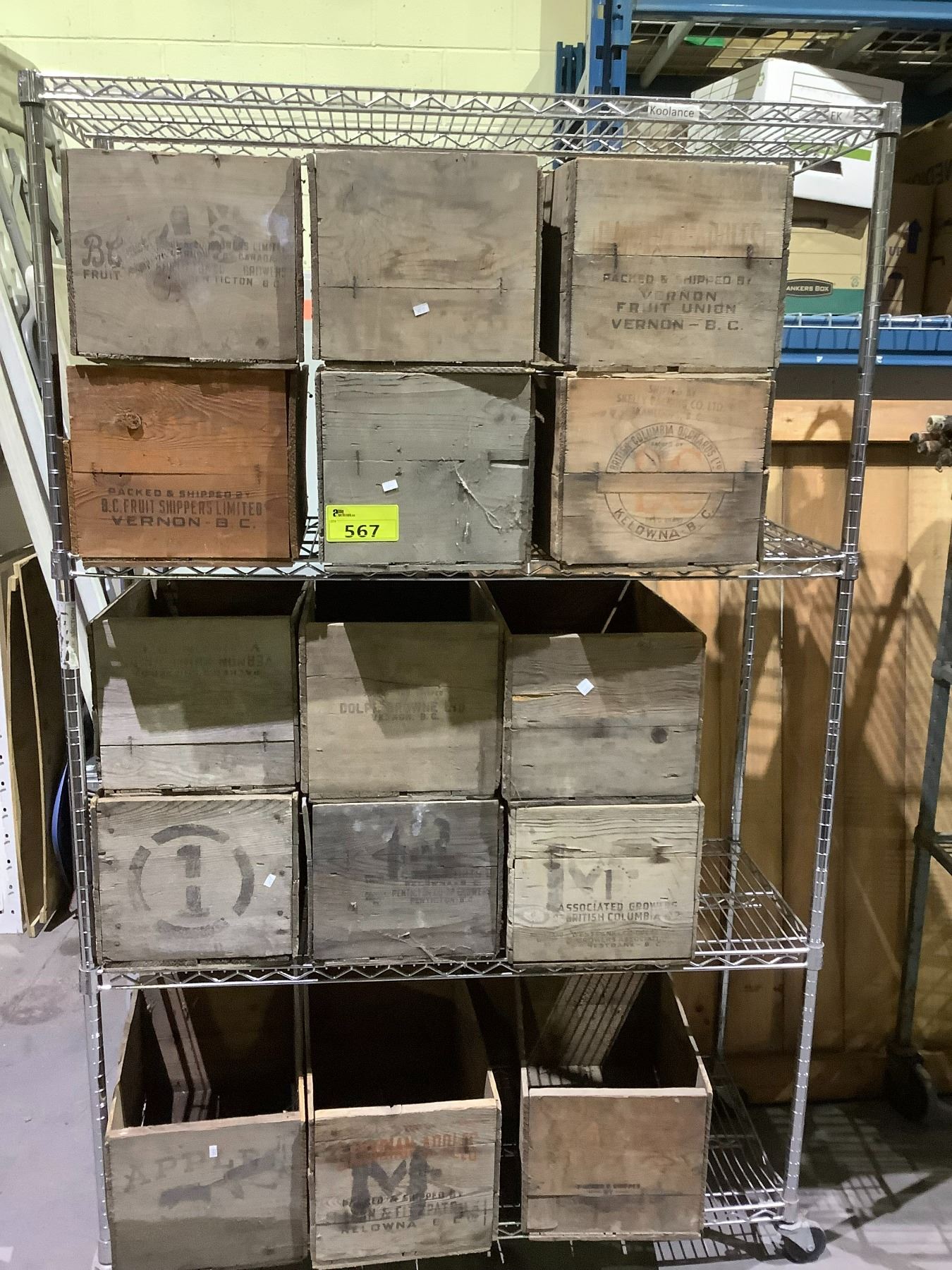 RACK OF VINTAGE WOOD CRATES (RACK NOT INCLUDED)