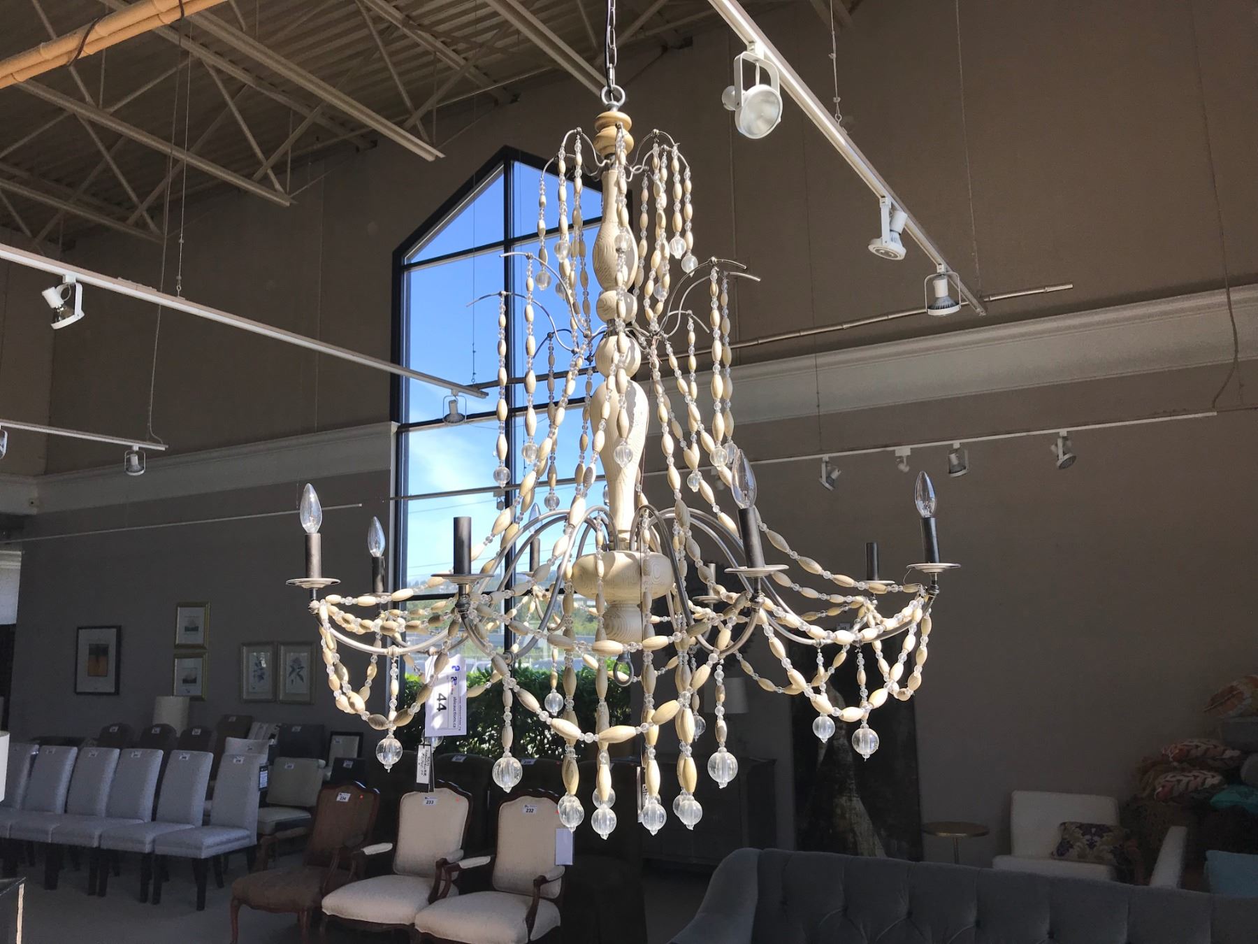 RAIN 8 HEAD WOOD & GLASS BEADED CANDLE STYLE CHANDELIER