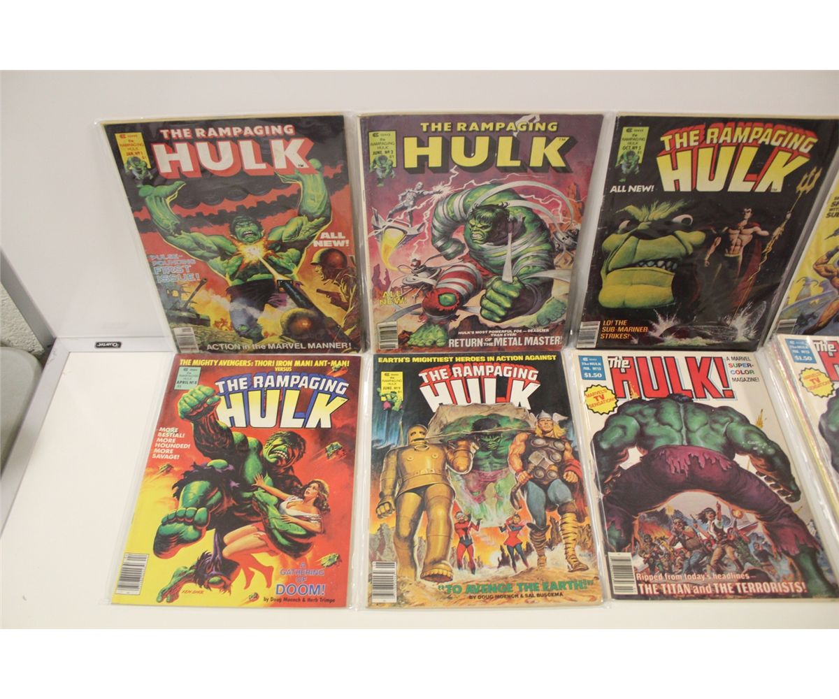 RAMPAGING HULK #1-27 (1977-79) INCLUDES #1, 3, 5, 6, 8, 9, 13 (X2), 14-15, 17-18, 20, 23 & 27. 15 BOOKS TOTAL, MID GRADE AVERAGE
