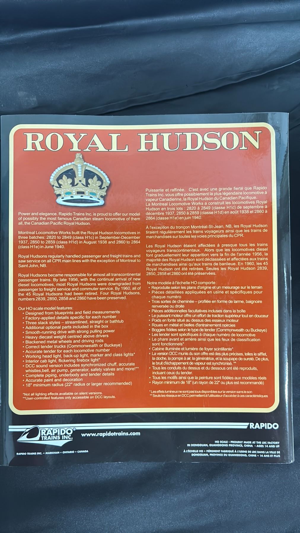 RAPIDO TRAINS ROYAL HUDSON BRITISH COLUMBIA RAILWAYS H1E-OIL TENDER HO SCALE MODEL TRAIN