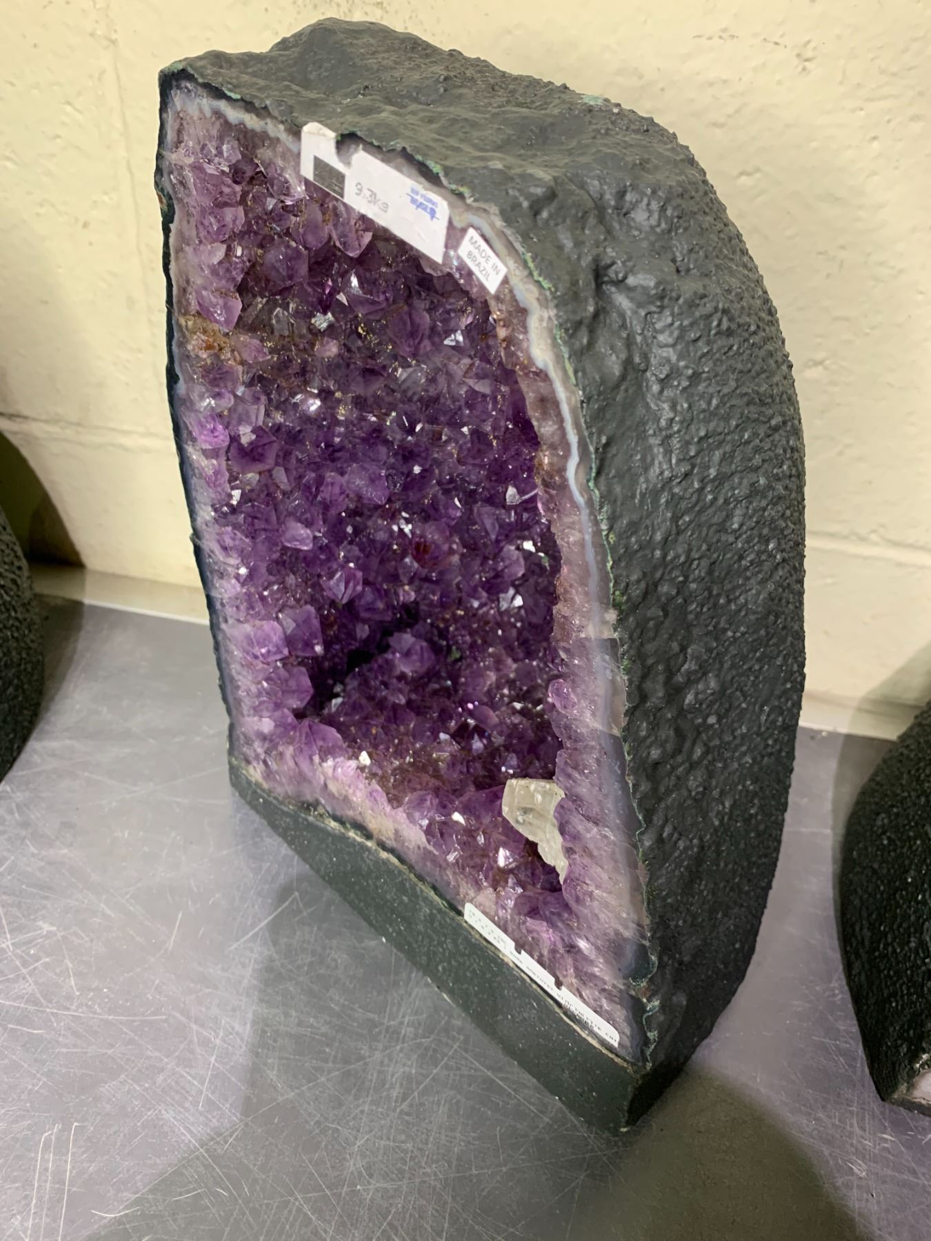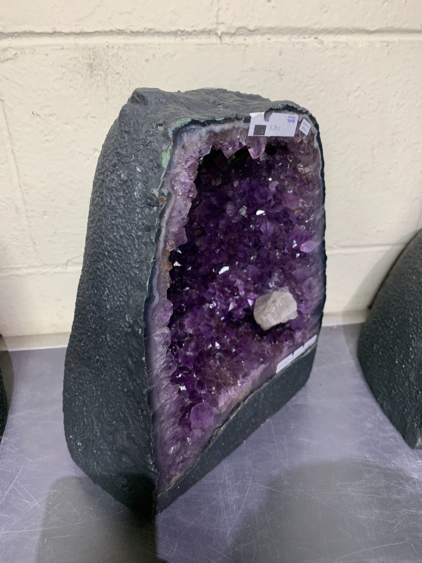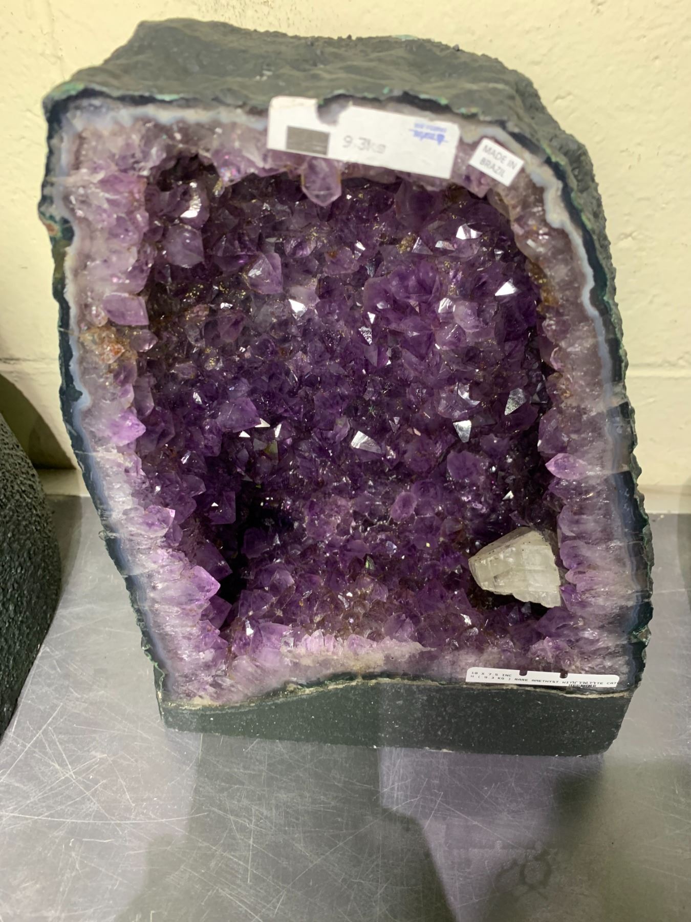 RARE AMETHYST CATHEDRAL GEODE WITH CALCITE 9.3KG APPROX 10X7.5"