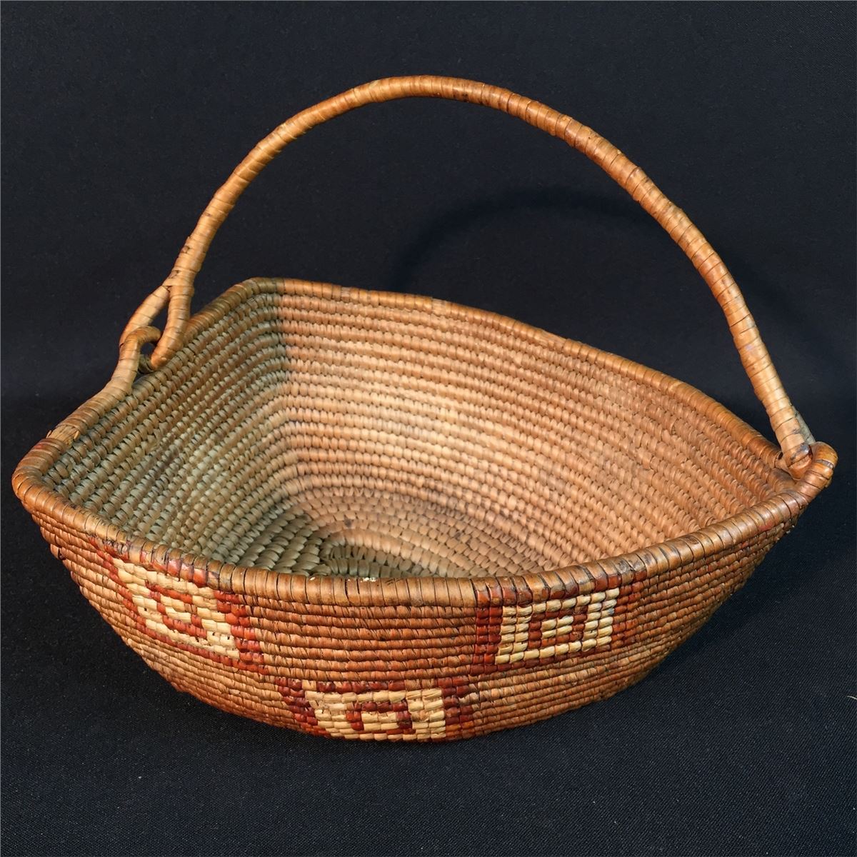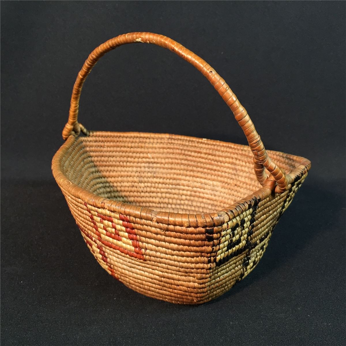 RARE NORTHWEST COAST BOAT BASKET WITH HANDLE, 9.5" LONG X 4" HIGH