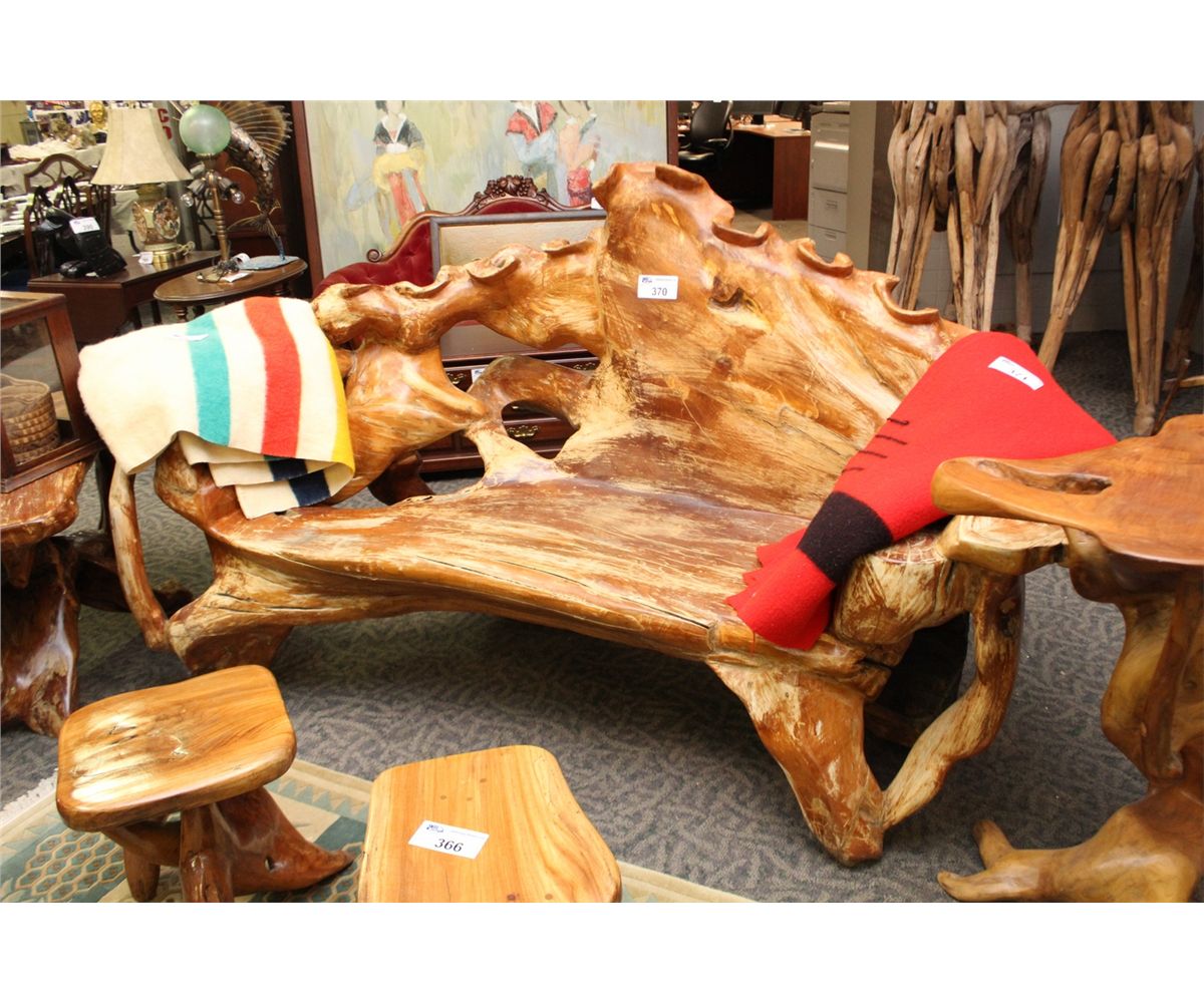 RARE SCUPLTURED TEAK BENCH VERY HEAVY
