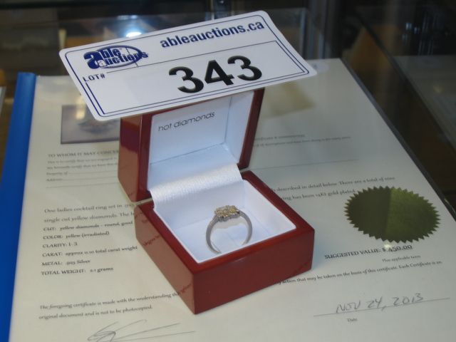 RARE SILVER AND 14K GOLD CLAD RING SET WITH 9 YELLOW DIAMONDS INCLUDES $450 CERTIFICATE