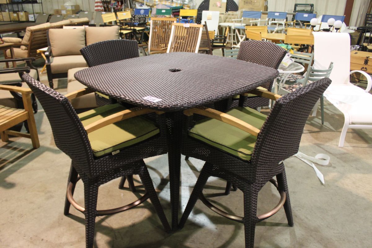 RATAN STYLE BAR TABLE WITH 4 STOOL CHAIRS