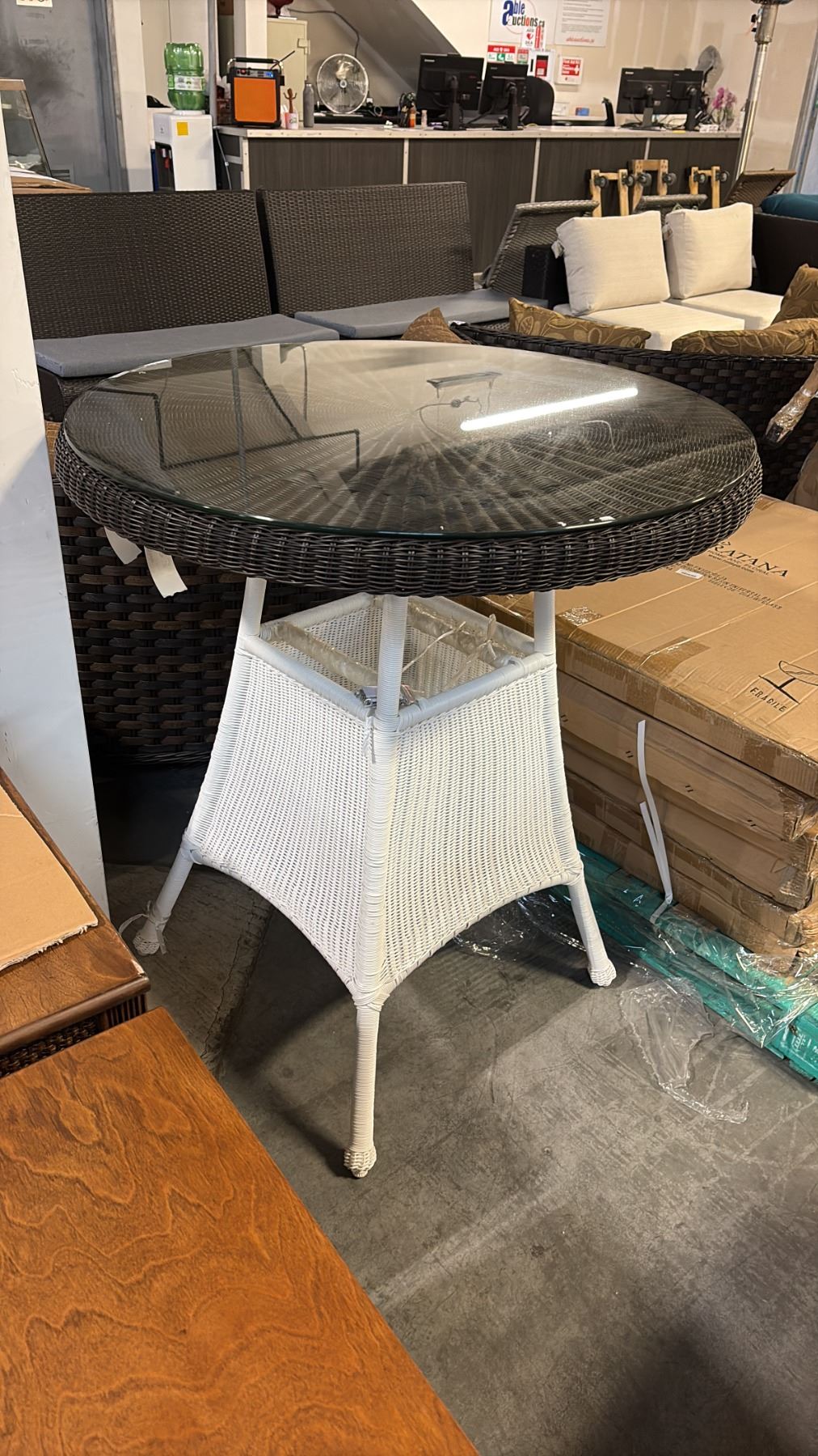 RATANA 36" GLASS TOP PATIO WICKER TABLE