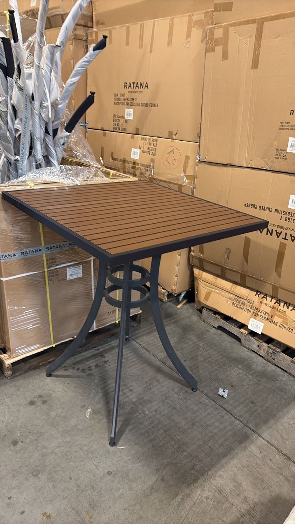 RATANA BAR HEIGHT PATIO TABLE WITH DURAWOOD TABLE TOP APPROXIMATELY 34"X34"