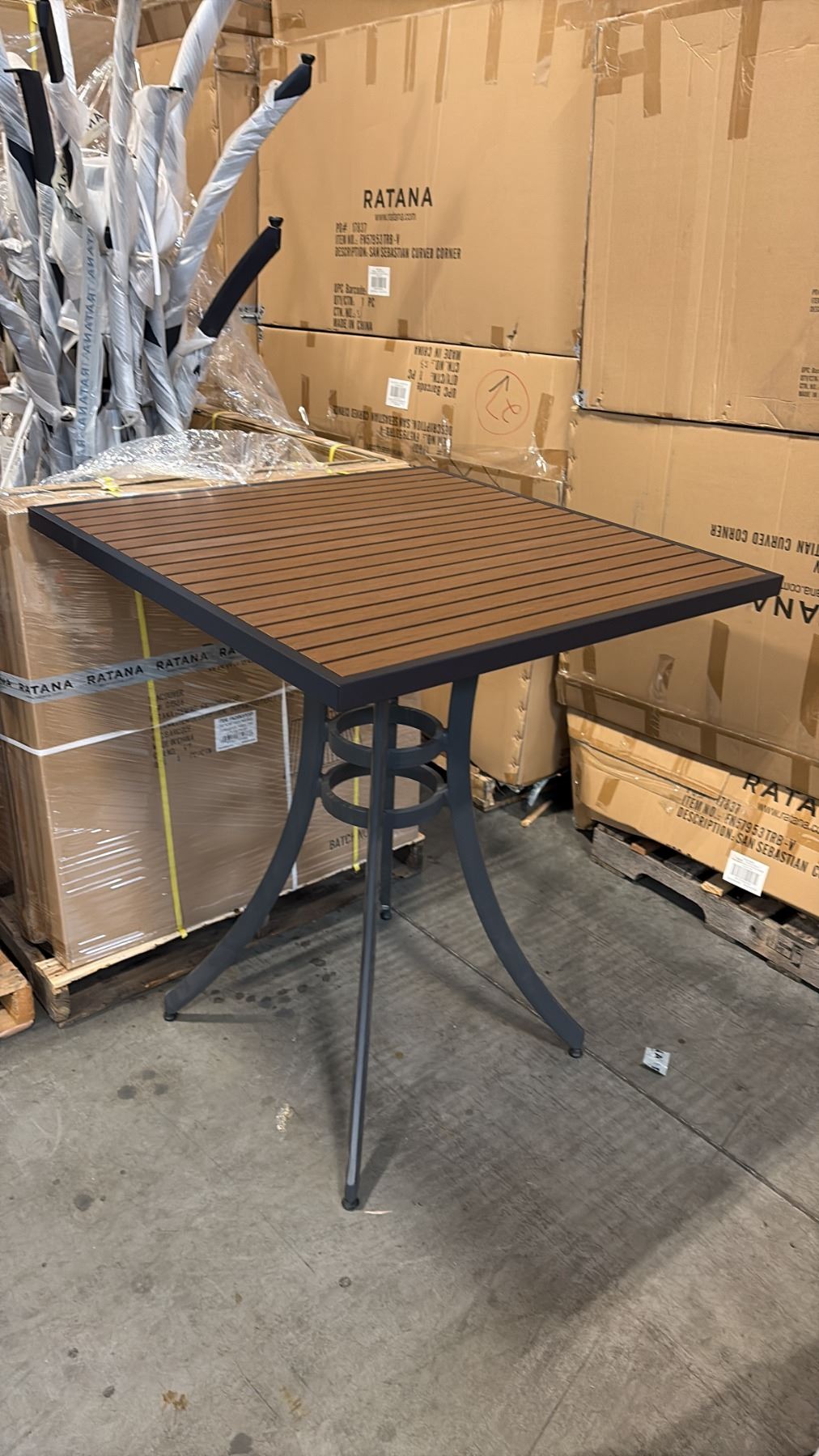 RATANA BAR HEIGHT PATIO TABLE WITH DURAWOOD TABLE TOP APPROXIMATELY 34 X34