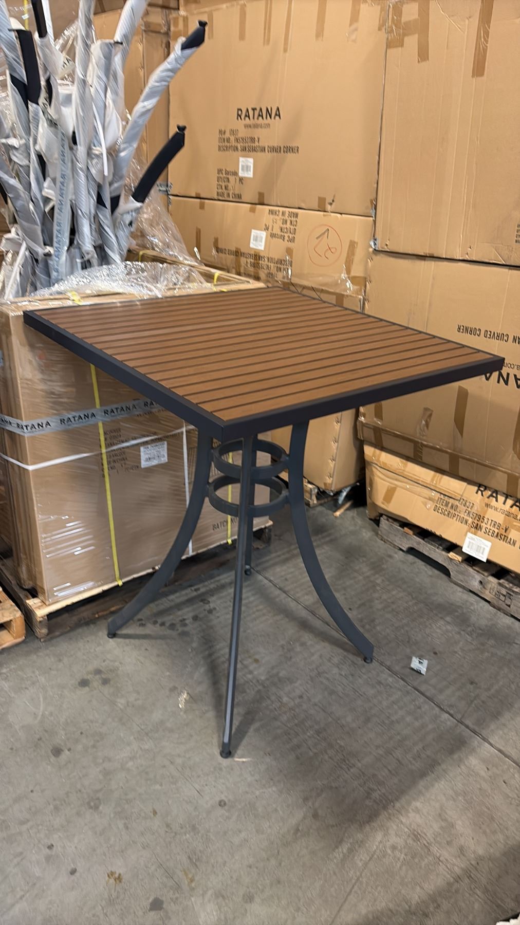 RATANA BAR HEIGHT PATIO TABLE WITH DURAWOOD TABLE TOP APPROXIMATELY 34 X34