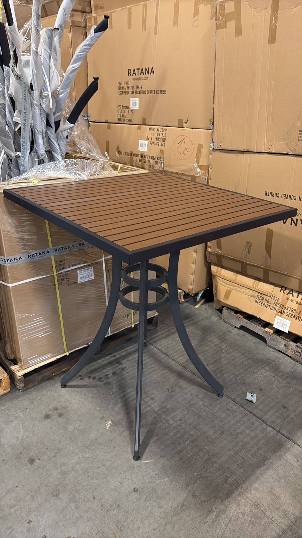 RATANA BAR HEIGHT PATIO TABLE WITH DURAWOOD TABLE TOP APPROXIMATELY 34"X34"