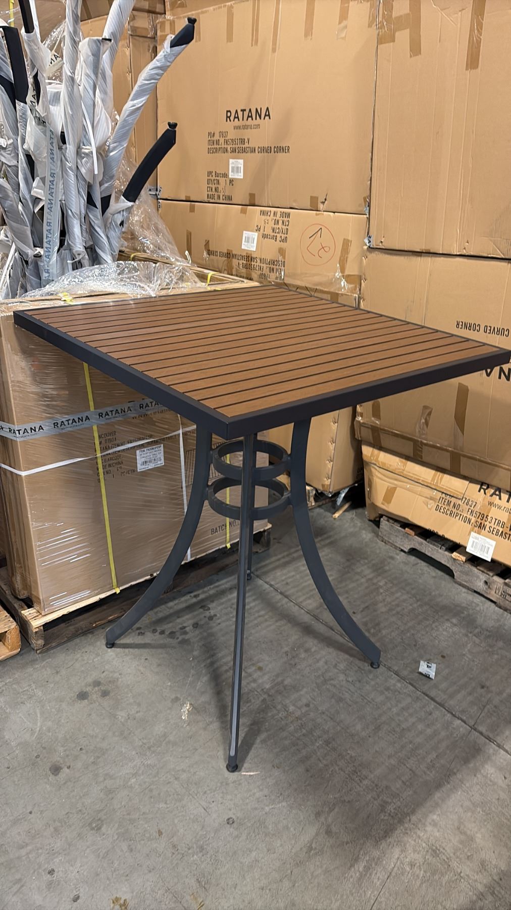 RATANA BAR HEIGHT PATIO TABLE WITH DURAWOOD TABLE TOP APPROXIMATELY 34 X34