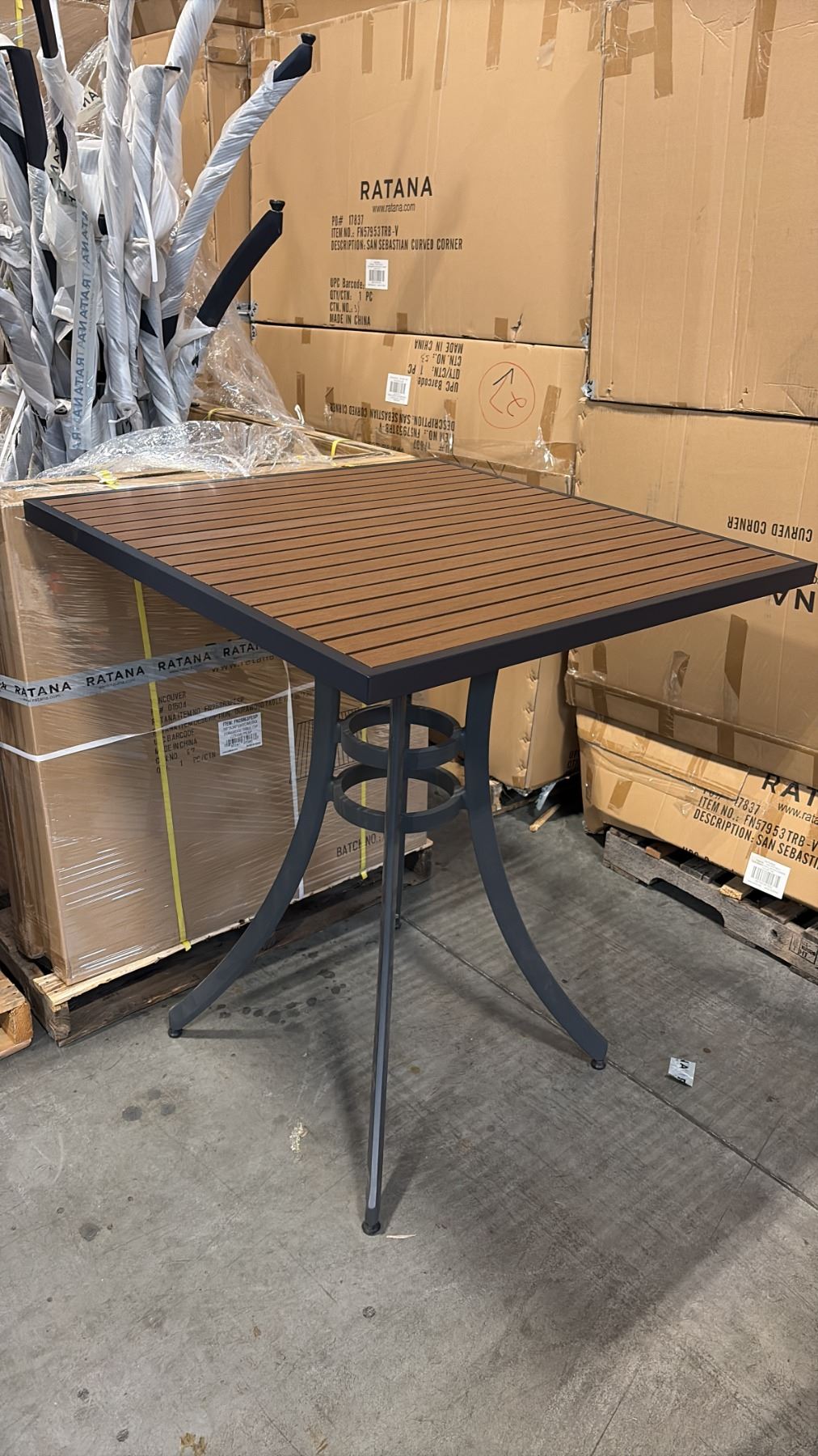 RATANA BAR HEIGHT PATIO TABLE WITH DURAWOOD TABLE TOP APPROXIMATELY 34 X34