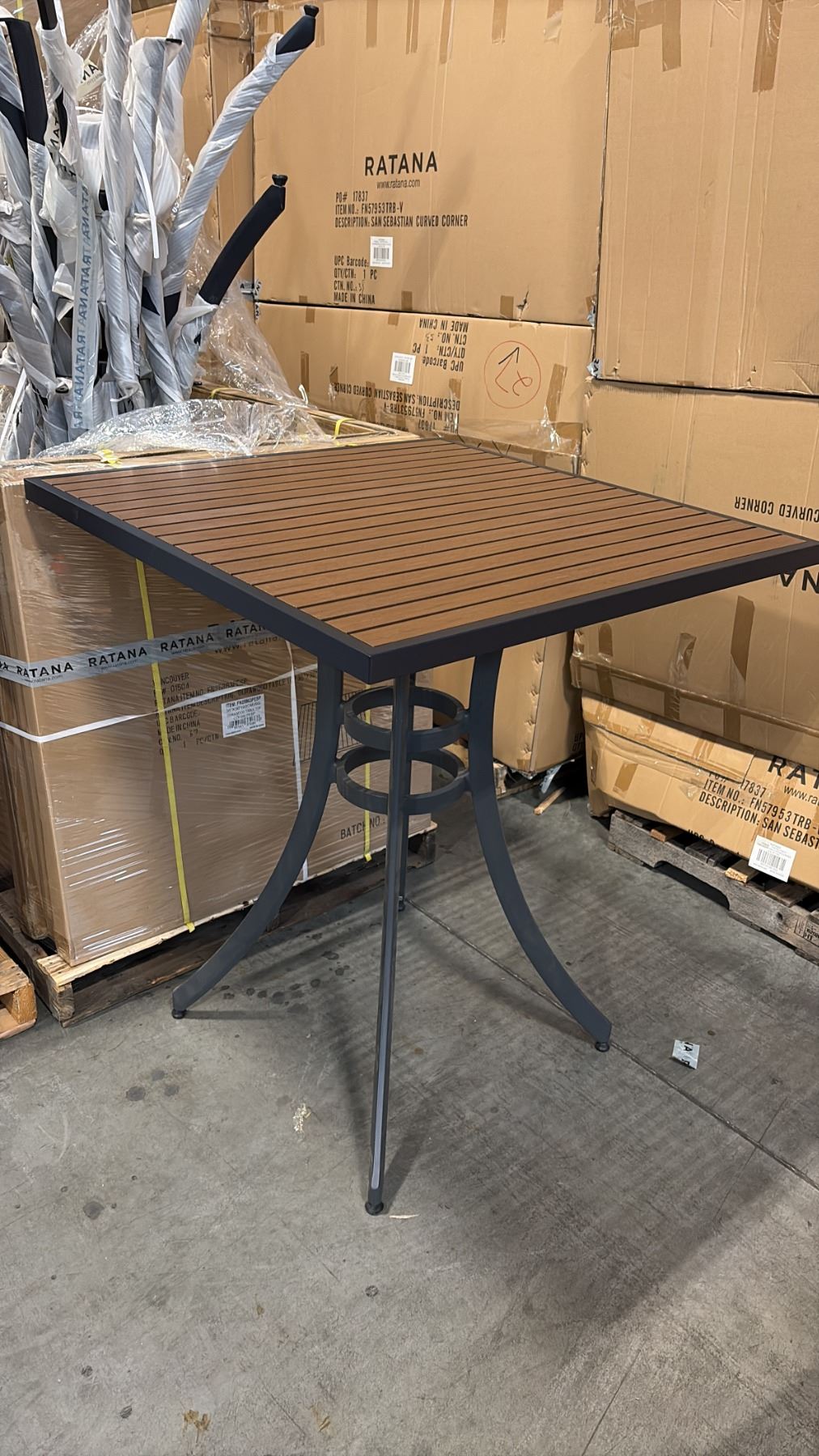 RATANA BAR HEIGHT PATIO TABLE WITH DURAWOOD TABLE TOP APPROXIMATELY 34"X34"
