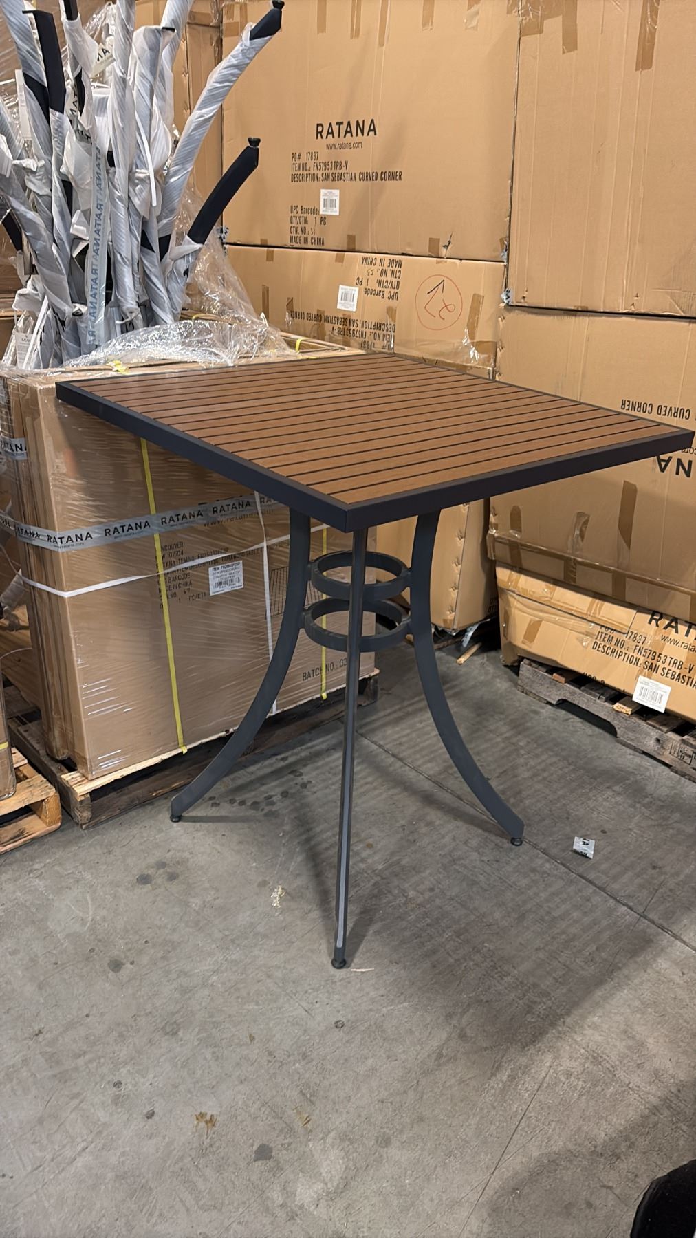 RATANA BAR HEIGHT PATIO TABLE WITH DURAWOOD TABLE TOP APPROXIMATELY 34 X34