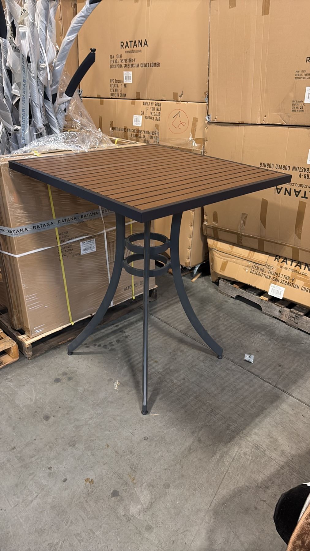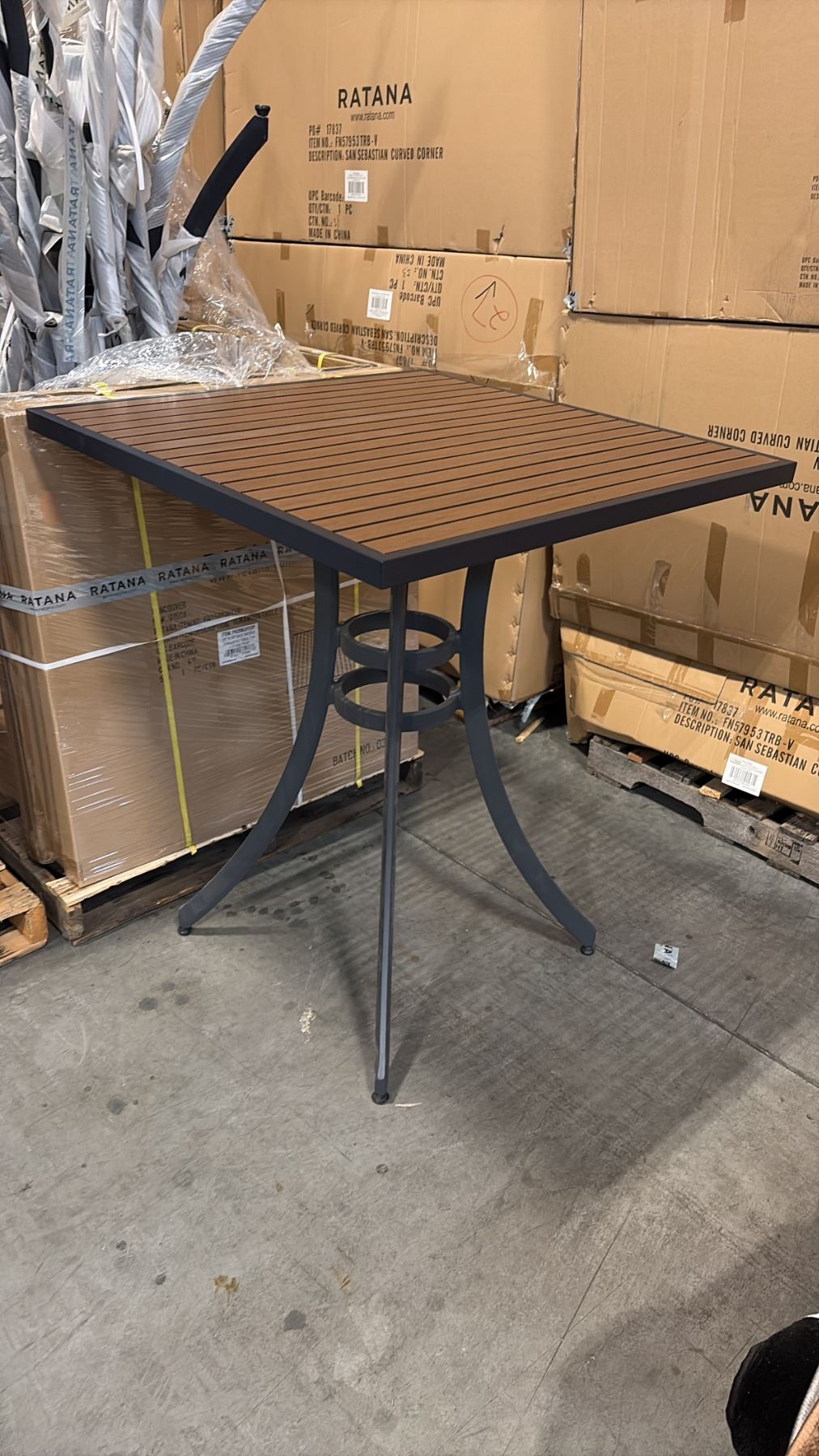 RATANA BAR HEIGHT PATIO TABLE WITH DURAWOOD TABLE TOP APPROXIMATELY 34 X34
