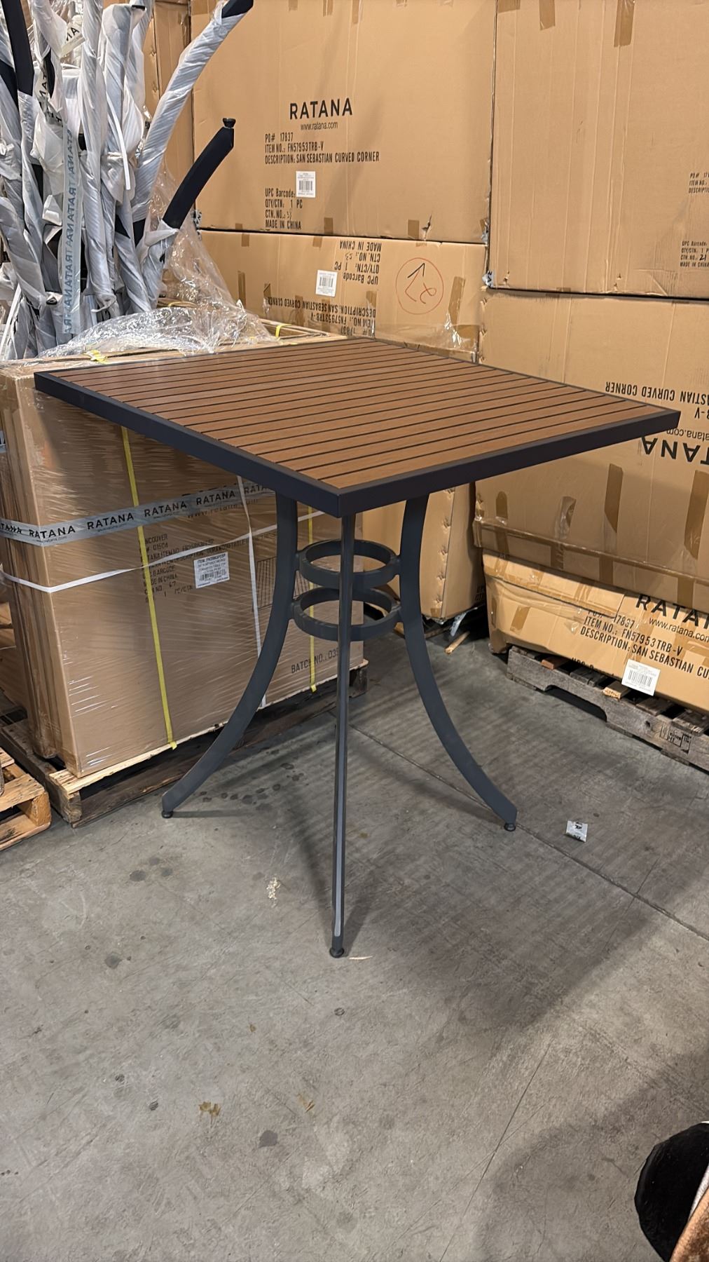 RATANA BAR HEIGHT PATIO TABLE WITH DURAWOOD TABLE TOP APPROXIMATELY 34"X34"