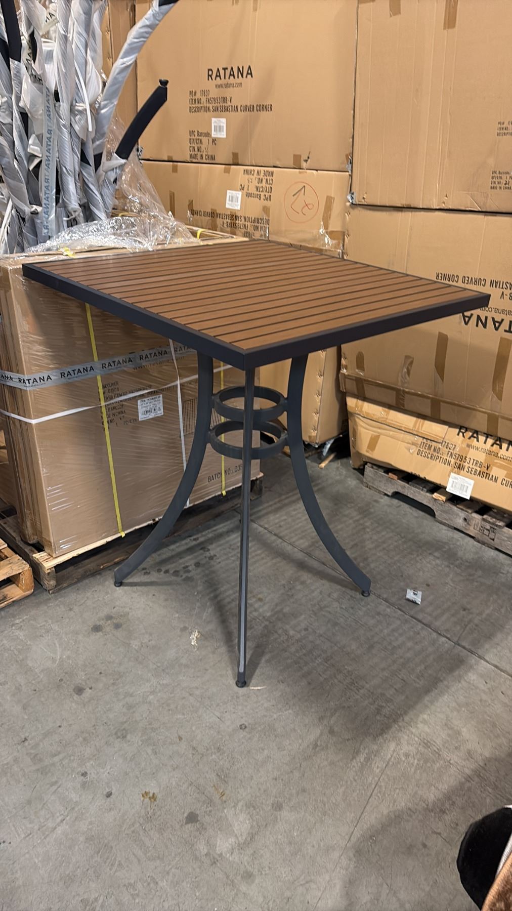 RATANA BAR HEIGHT PATIO TABLE WITH DURAWOOD TABLE TOP APPROXIMATELY 34"X34"