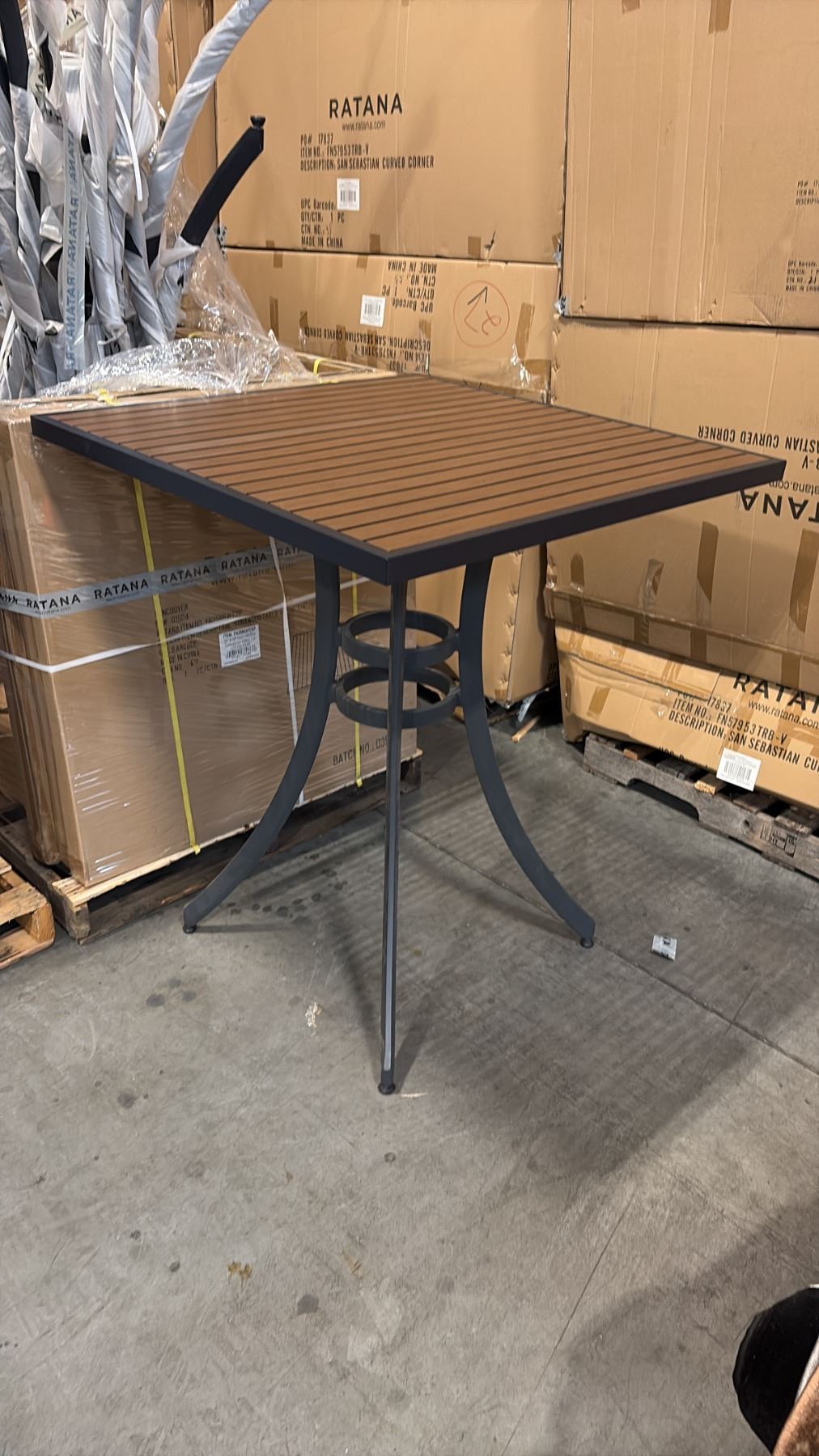 RATANA BAR HEIGHT PATIO TABLE WITH DURAWOOD TABLE TOP APPROXIMATELY 34"X34"