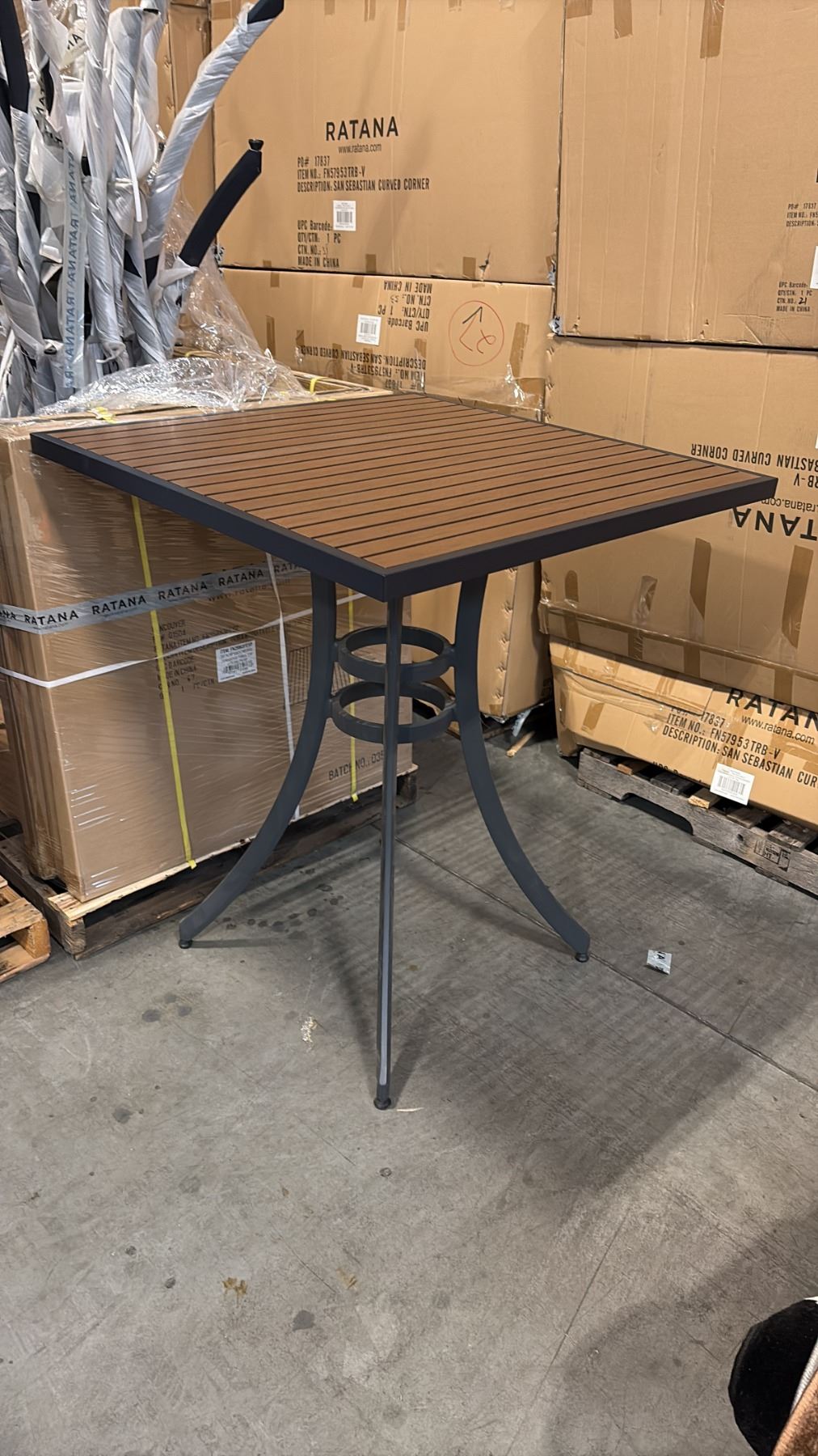 RATANA BAR HEIGHT PATIO TABLE WITH DURAWOOD TABLE TOP APPROXIMATELY 34 X34