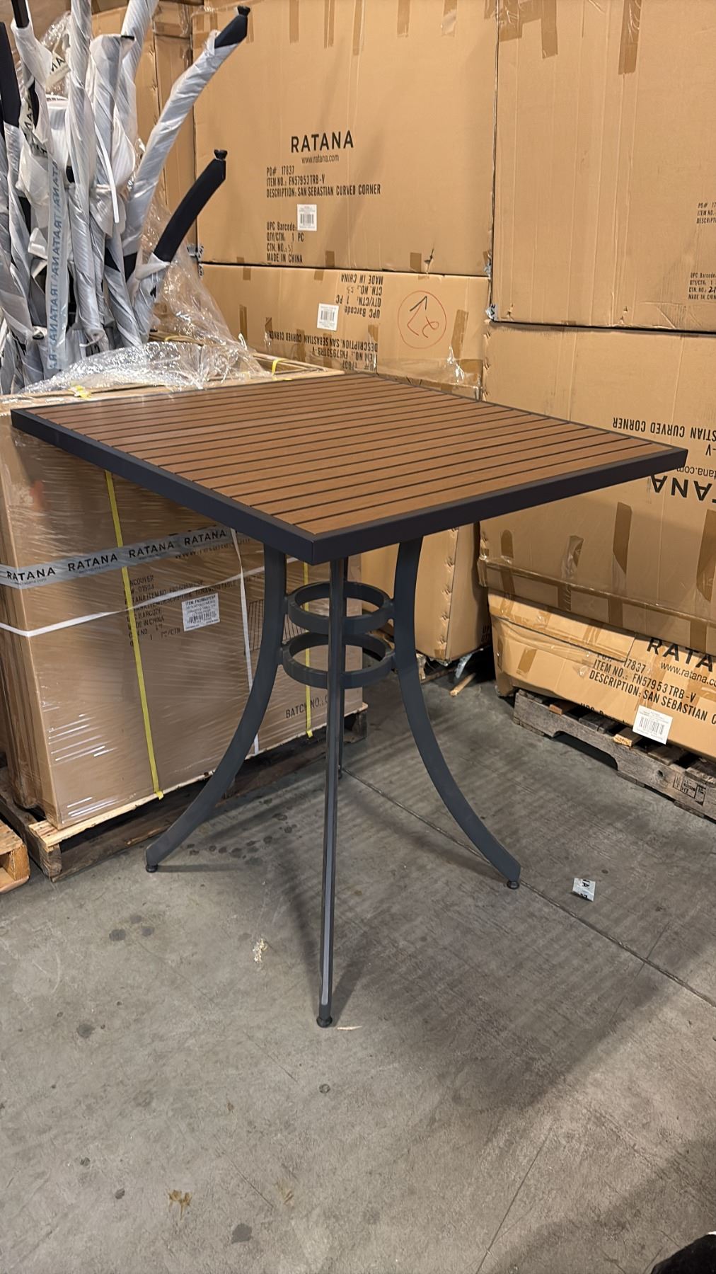 RATANA BAR HEIGHT PATIO TABLE WITH DURAWOOD TABLE TOP APPROXIMATELY 34"X34"