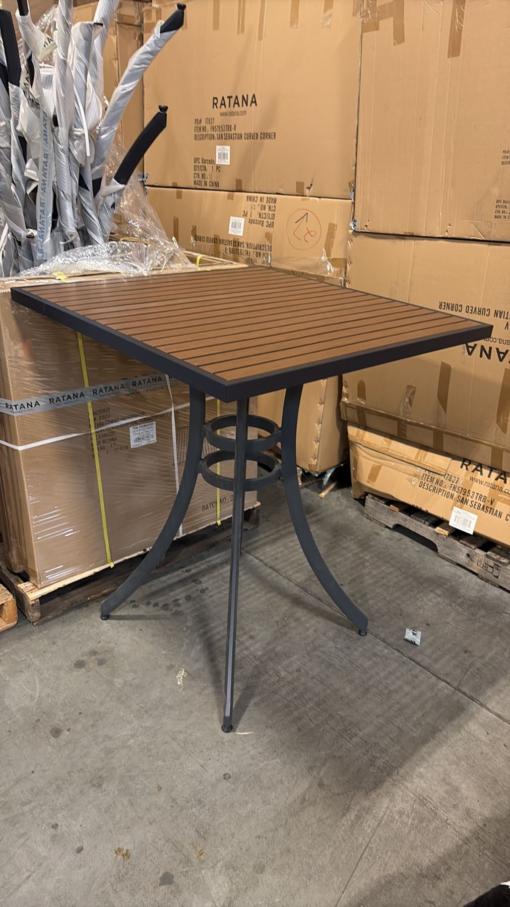 RATANA BAR HEIGHT PATIO TABLE WITH DURAWOOD TABLE TOP APPROXIMATELY 34"X34"